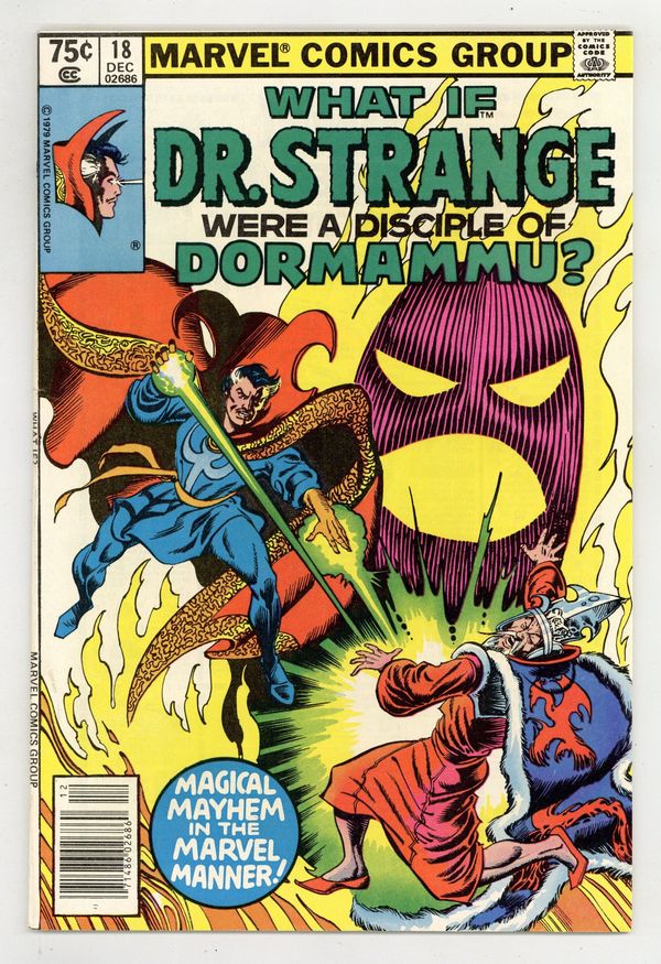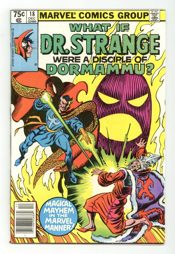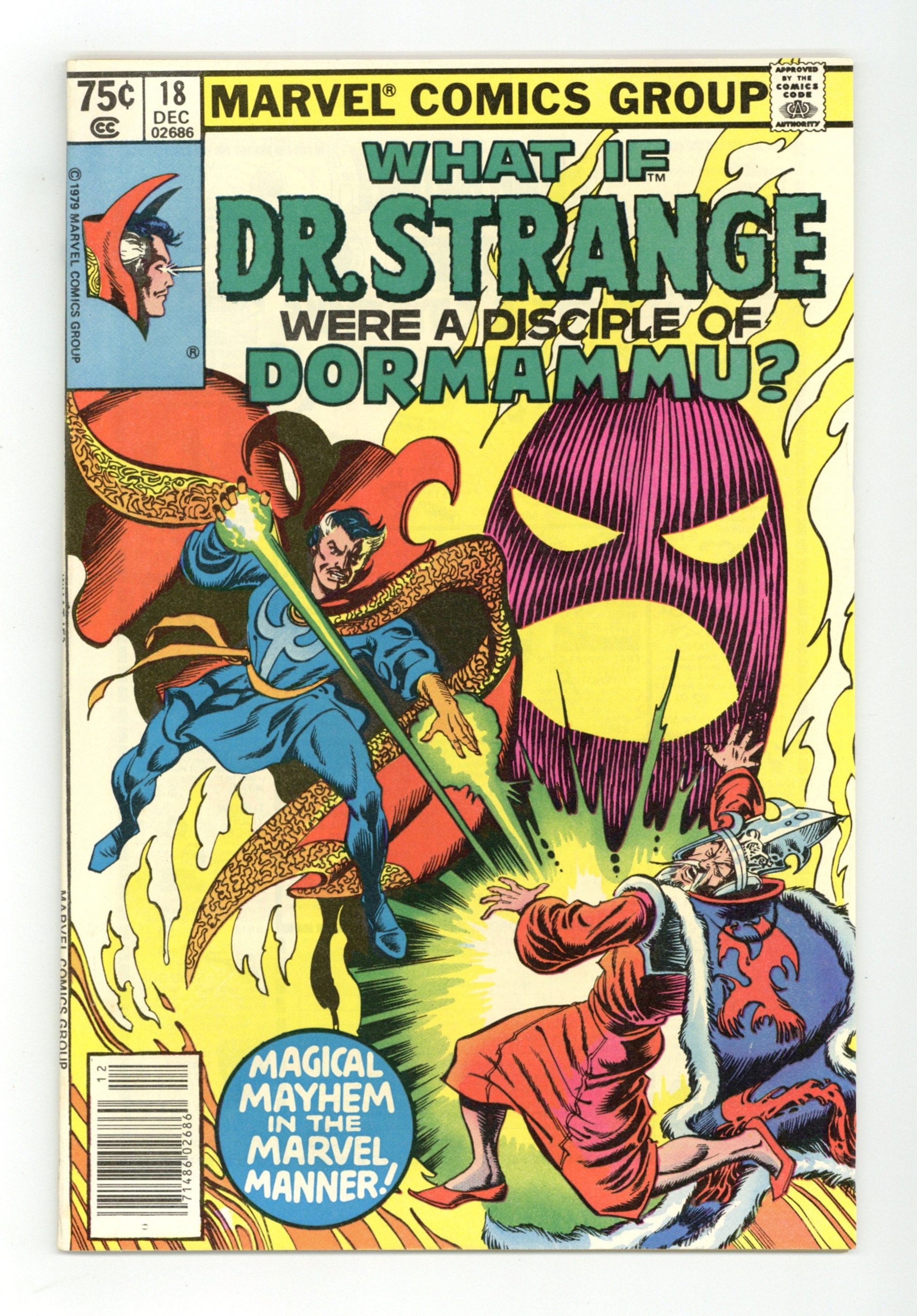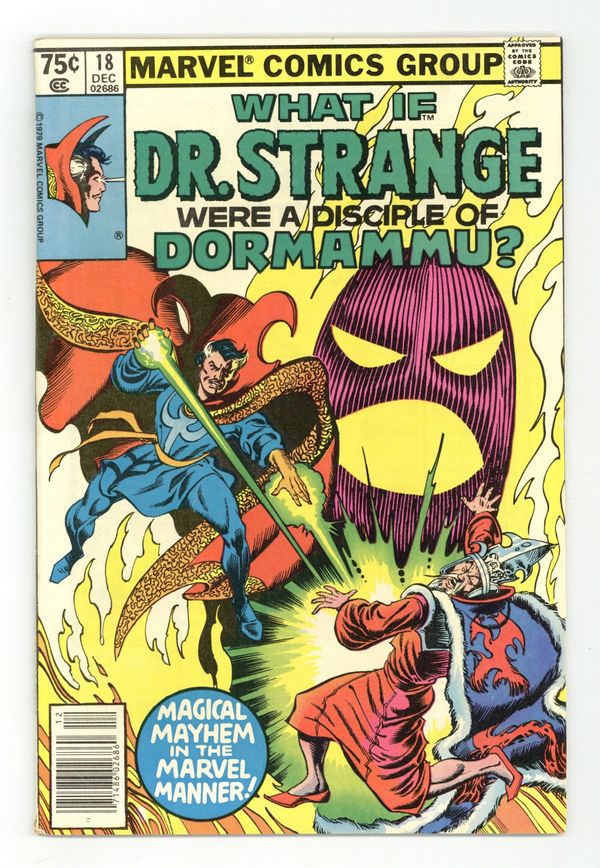 Newsstand Edition. Story by Peter Gillis. Art by Tom Sutton and Bruce Patterson. Cover by Gene Colan and Pablo Marcus. "What If Dr. Strange Had Been a Disciple of Dormammu?" Uatu the Watcher reminds the reader that events can always take a different path: that a distinction as apparently obvious as good and evil may be very slight indeed; Doctor Strange, as established in the main universe, was an arrogant surgeon who cared more for his patients' money than their health; When his ability to operate was robbed from him due to injuries in a car accident, he sought out the Ancient One, who refused to hand him the easy cure he was hoping for; Instead, he let Strange stay at the retreat and witness Baron Mordo's treachery, thus realizing that greater forces were in the world than his own selfish ambitions, and setting his foot on the path that would lead him to becoming Master of the Mystic Arts. "Spider-Man Meets June Jitsui!" ad for Hostess snack cakes. 52 pgs. Cover price $0.75.