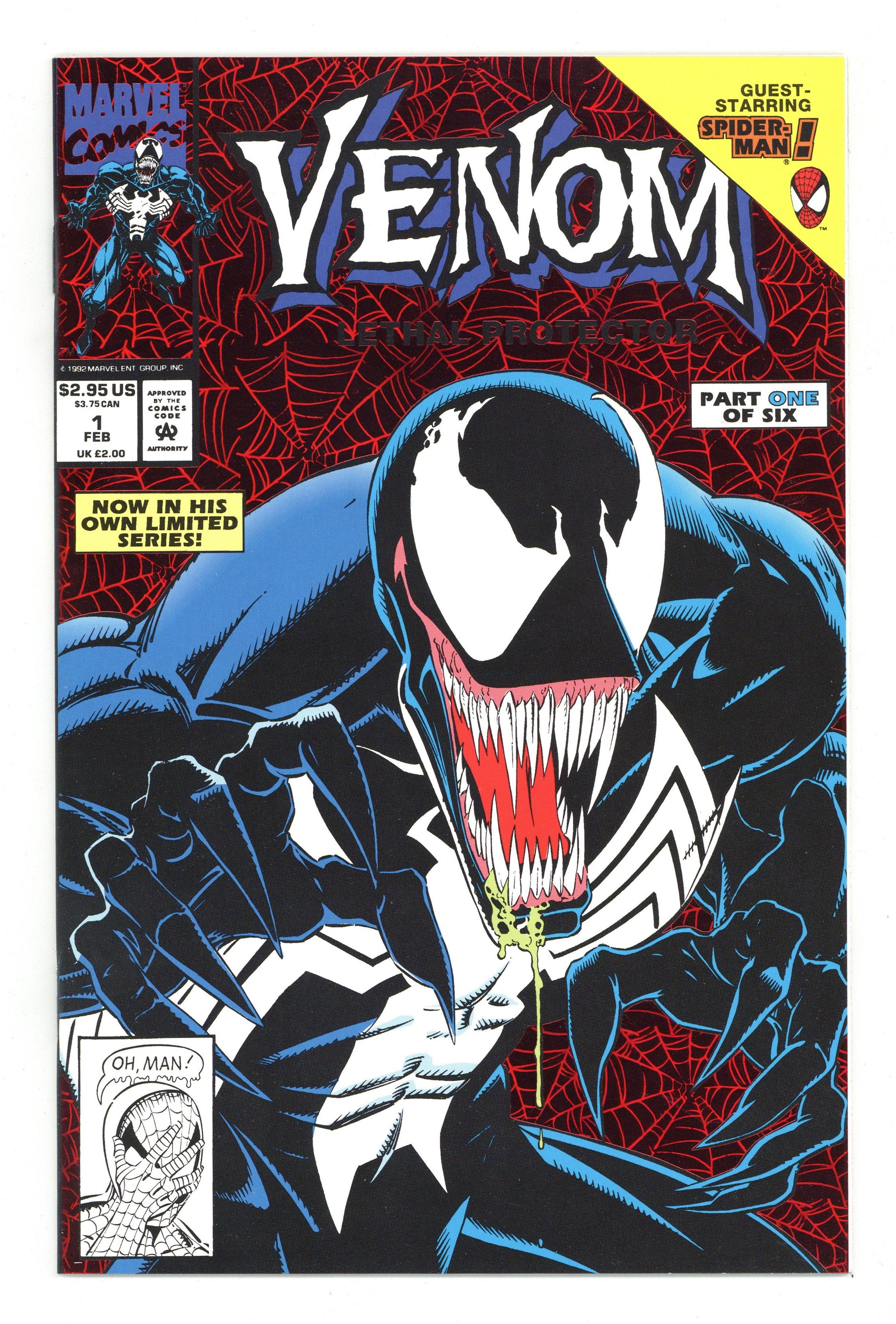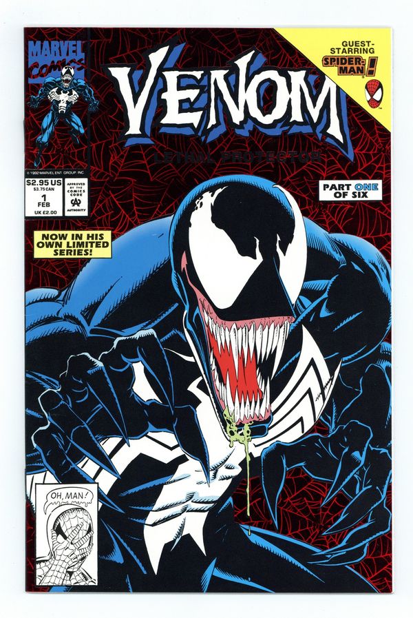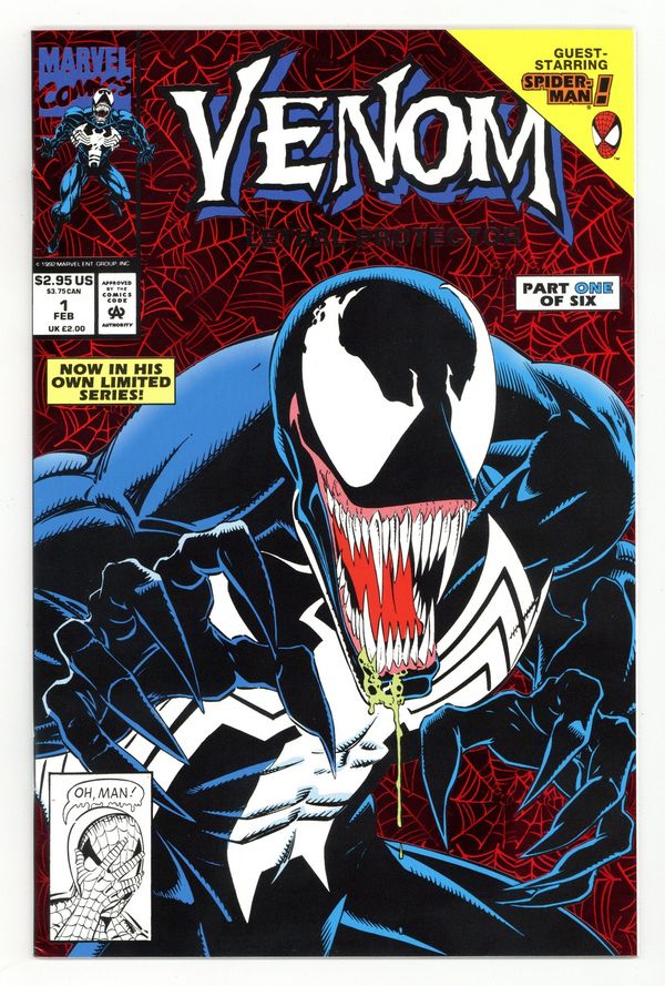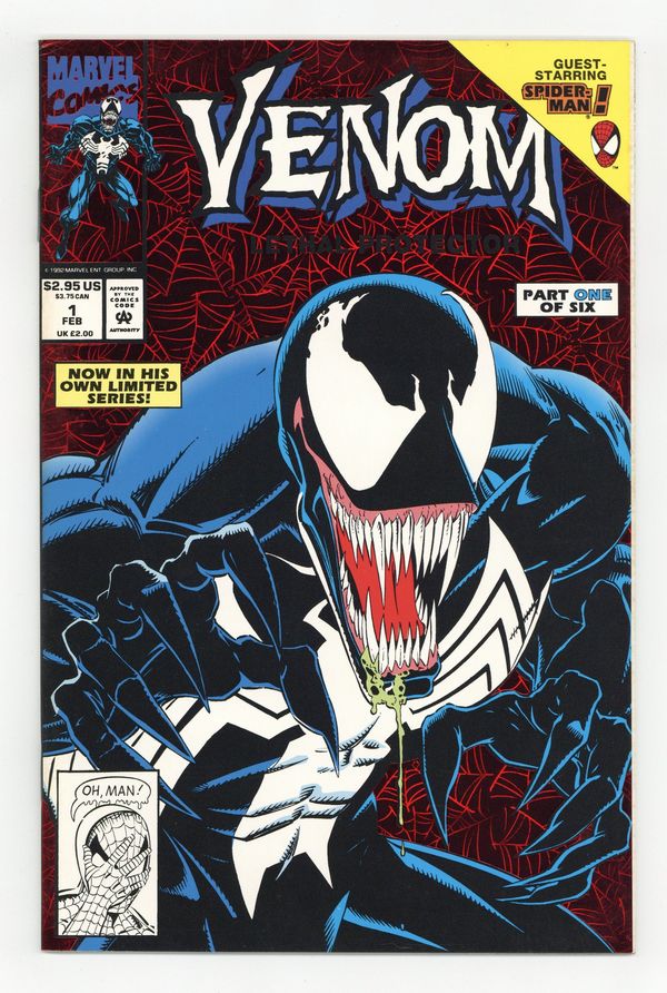 Ends Apr 16 9:38 PM CST Bid History 10 bids Current Bid $50 Your Secret Max Bid If you'd like to bid, please log in or register. Direct Edition. Red Foil Enhanced CardStock cover, art by Mark Bagley and Sam de la Rosa. Lethal Protector Part 1: Dark Soul Drifting, script by David Michelinie, pencils by Mark Bagley, inks by Al Milgrom and Sam de la Rosa; Venom moves to San Fransisco to try out his new protection of innocents racket; Venom and Spidey save a group of homeless folk. 36 pgs., full color. $2.95. Cover price $2.95.