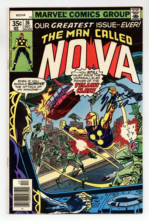 "Death is the Yellow Claw!" Guest-Starring Nick Fury. Story by Marv Wolfman. Art by Carmine Infantino and Tom Palmer. Having survived the test by Nick Fury last issue, Nova must now confront the menace of Yellow Claw. Plus, is Richard Rider's super-hero duties interfering with his personal responsibilities to his friends and family? Story continues in next issue. 32 pages. Cover price $0.35.