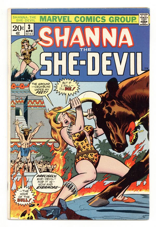Cover pencils by John Buscema, inks by Joe Sinnott. "The Moon of the Fear-Bulls," script by Carole Seuling, pencils by Ross Andru, inks by Vince Colletta; The Hour of the Bull is near for Shanna, Queen of the Jungle; intro and death of Erakes and Phobotauros. 36 pgs., full color. Cover price $0.20.