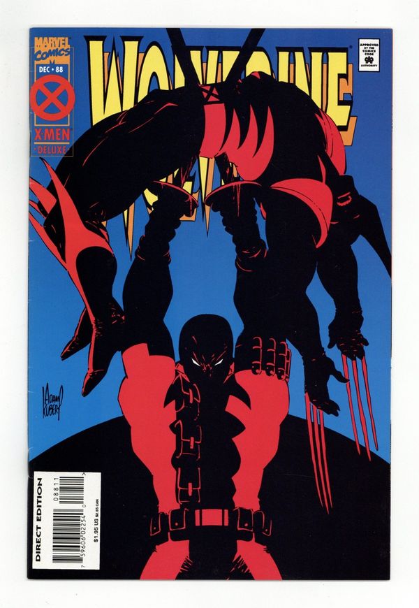 $38.50Deluxe Direct edition. Cover art by Adam Kubert. It's D-D-Deadpool, Folks!, script by Larry Hama, pencils by Adam Kubert and Fabio Laguna, inks by Mark Farmer and Tim Townsend; Wolvie stops in to check on Kane and ends up battling Deadpool instead. 36 pgs. $1.95. Cover price $1.95.