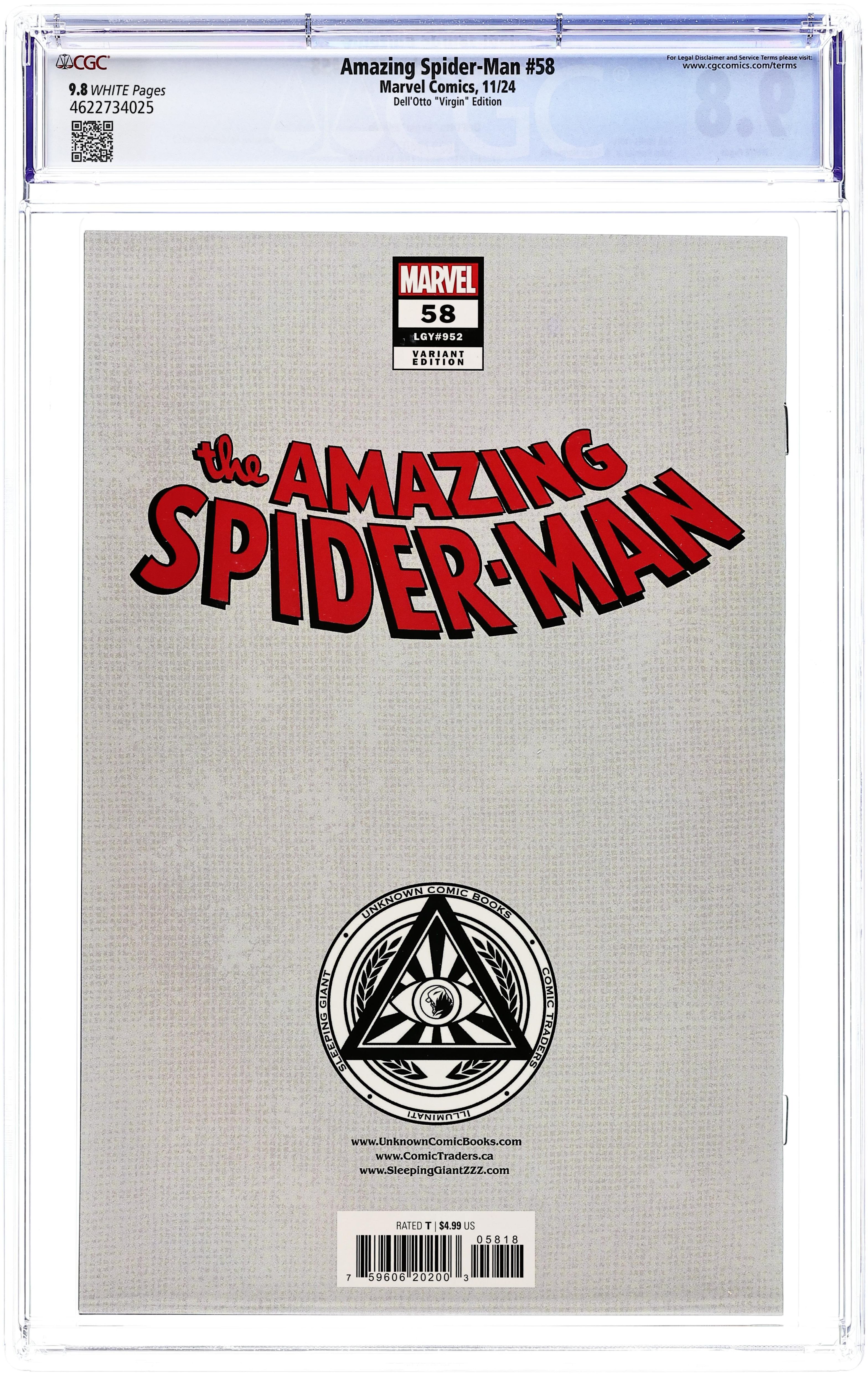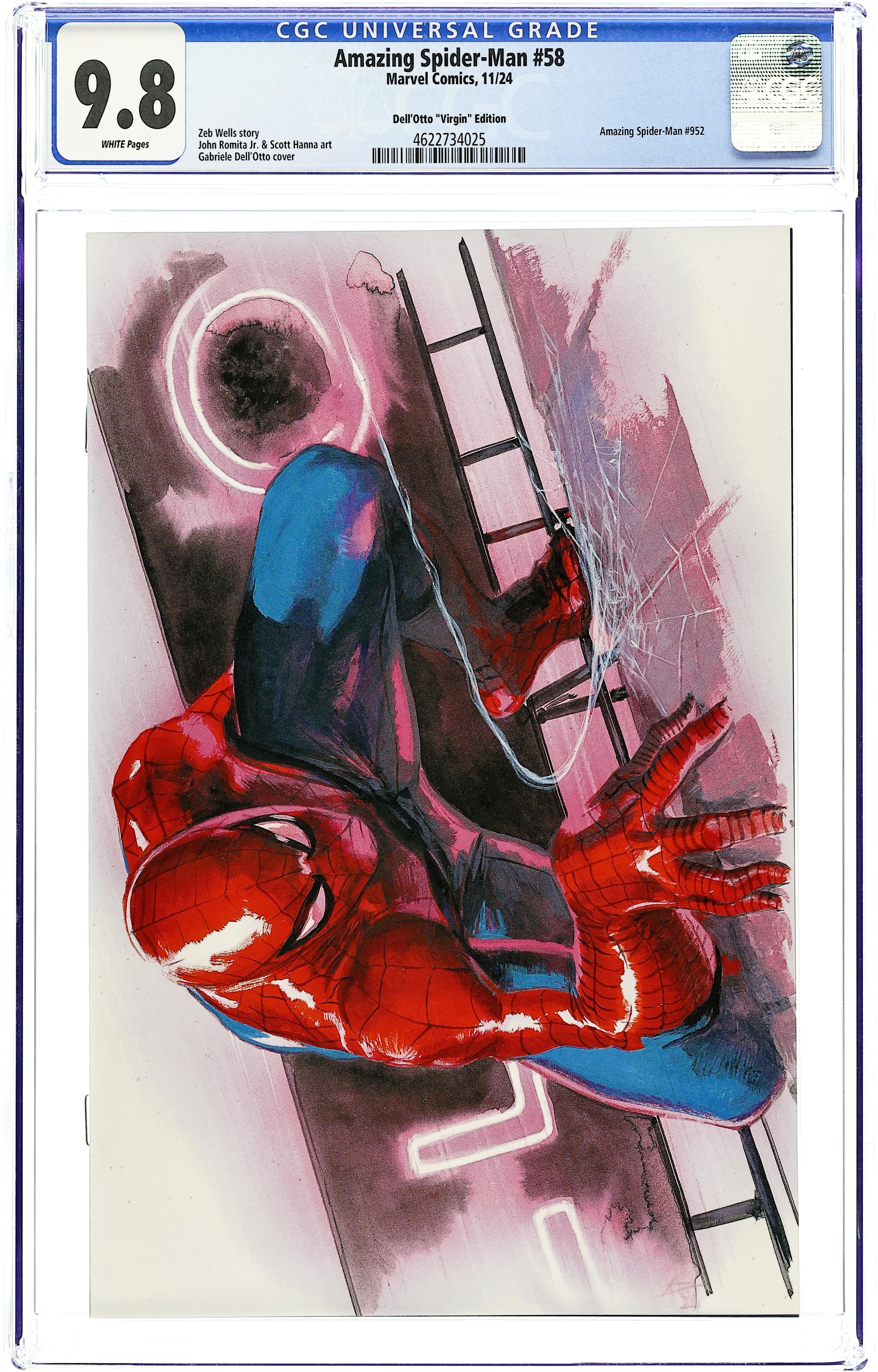 Comics Illuminati (Unknown Comic Books, Comic Traders, and Sleeping Giant) Exclusive Virgin Cover by Gabriele Dell'Otto. Written by Zeb Wells. Art by John Romita Jr. The most visceral issues in AMAZING SPIDER-MAN history begin here! 32 pages, full color. Rated T