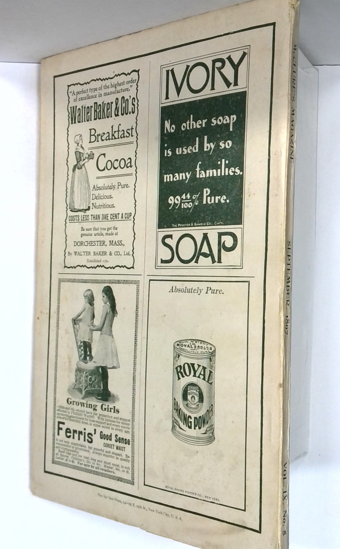 Vol. 9, No. 5 - September 1897. McClure's was a popular mass-market magazine comprised of investigative news articles (often credited as being the origin of muckracking journalism) and fiction stories by popular authors of the day. 6.75" x 9.75", 180 Pages, B&W. Cover price $0.10.