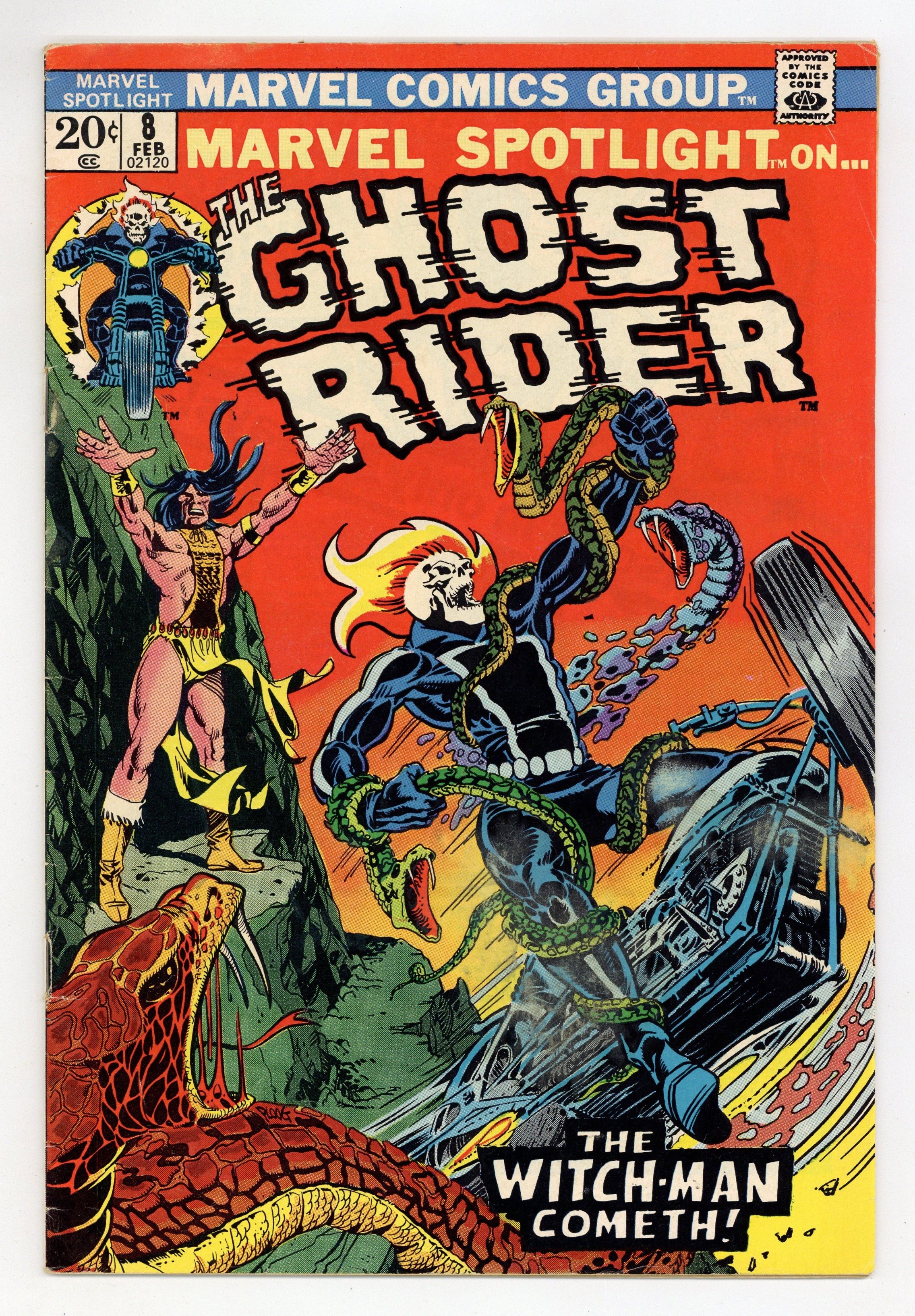 Cover art by Mike Ploog. The Hordes of Hell, script by Gary Friedrich, pencils by Mike Ploog, inks by Jim Mooney; Ghost Rider and Crash are transported to Hell to fight one another; Satan sends demons to help Crash. 36 pages, full color. Cover price $0.20.