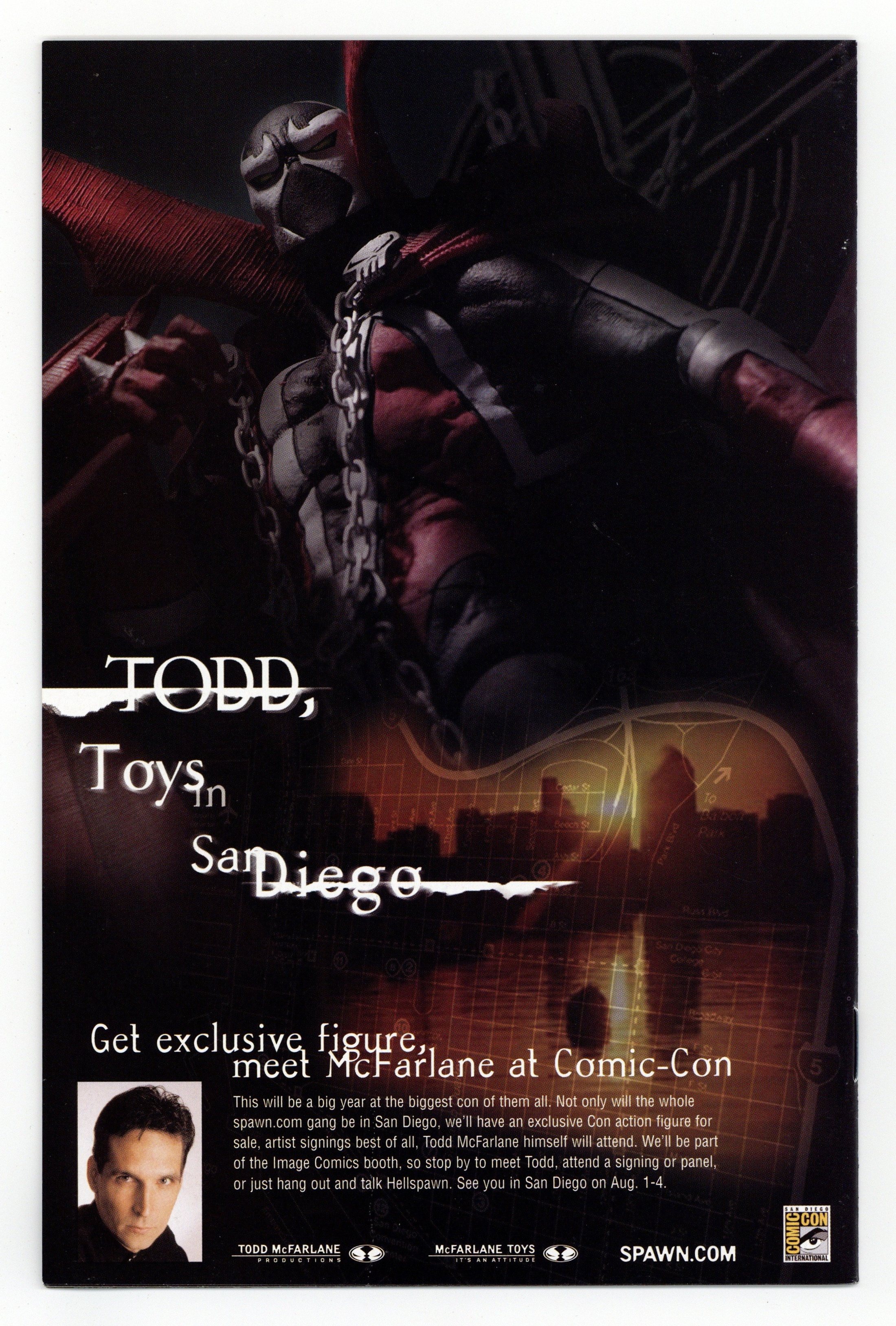 "A Season in Hell" (W) Todd McFarlane and Brian Holguin (P) Angel Medina (I) Danny Miki (C)Brian Haberlin (Cover)Greg Capullo After more than a year in exile, Spawn's erstwhile mentor Cogliostro returns, bringing shocking news with him. The shadow of death is creeping across the Earth, and mysterious forces are choosing sides in a secret war that is far greater and far older than the war between Heaven and Hell. And while Spawn is steadfast in his desire to control his own destiny, destiny may have plans of its own. FC, 32pg$2.50 Cover price $2.50.