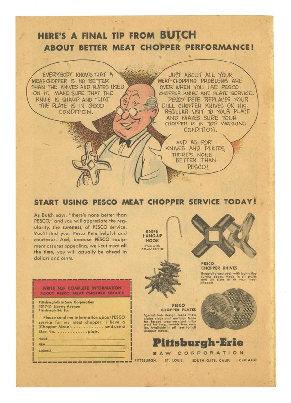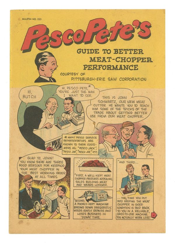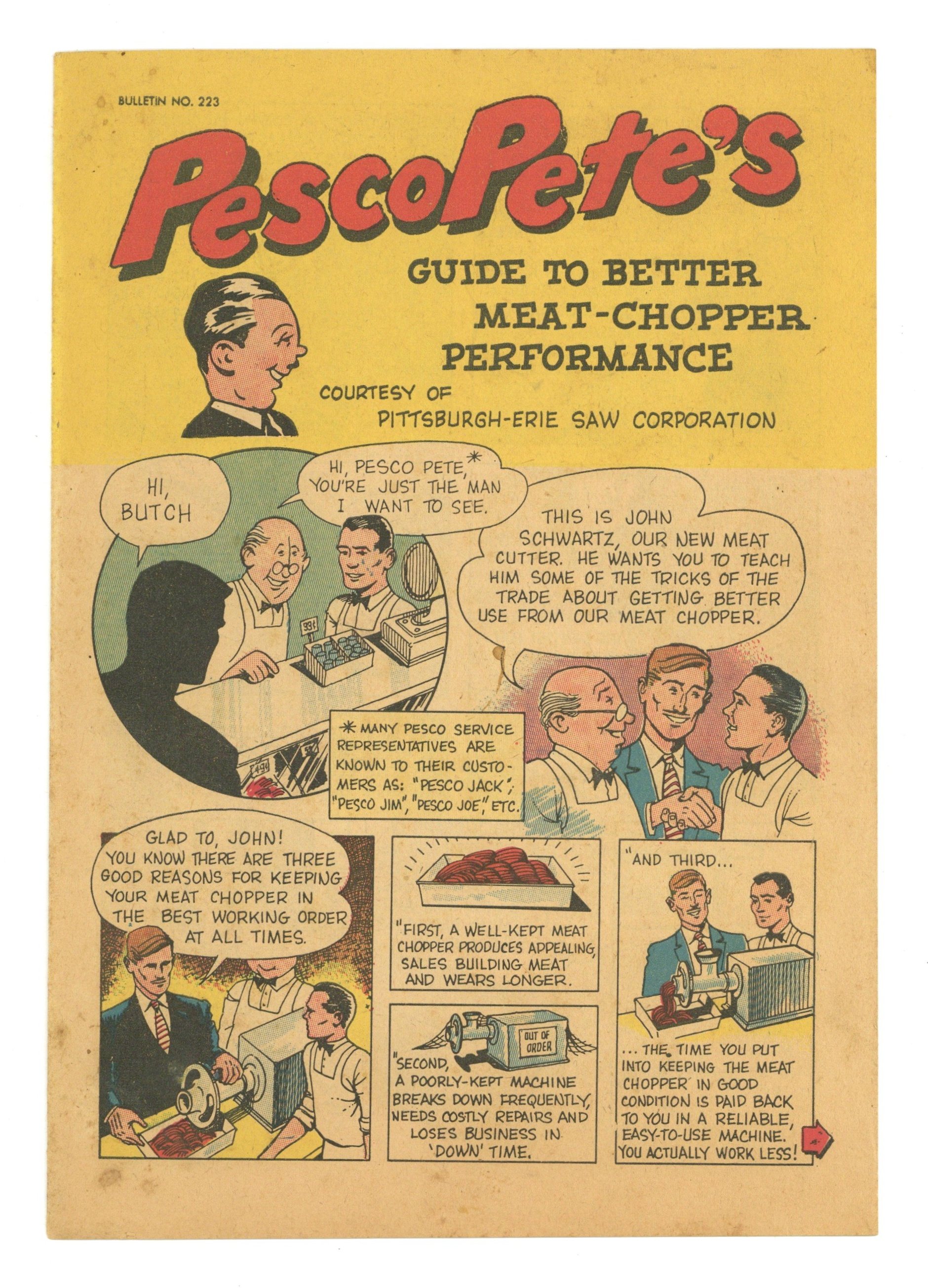 Published 1960 by Pittsburg-Erie Saw Corporation.$26.00Pesco Pete's Guide to Better Meat Chopper Performance.