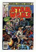 Tags: Star Wars A New Hope (part 2), Star Wars$30.001st printing, standard 30 Cent Newsstand Edition with UPC. A New Hope: Part 2 of 6. "Six against the Galaxy!" Based on the screenplay by George Lucas. Adapted by Roy Thomas. Art by Howard Chaykin and Steve Leialoha. Princess Leia is in the hands of the evil Empire and the sinister Darth Vader. Now it falls on farm boy Luke Skywalker to seize his destiny and rescue her, and save the galaxy. But he can't do it alone. Luckily he'll get some help from old Ben Kenobi, once a great Jedi Knight known as Obi-Wan, Han Solo, a cocky ace pilot and all around scoundrel, Chewbacca, the hulking wookie and loyal co-pilot to Han, and the droids who hold the key to the Empire's defeat, C-3PO and R2-D2. NOTE: Spider-Man stas in a one-page Hostess ad, "Madam Web!" Cover price $0.30.