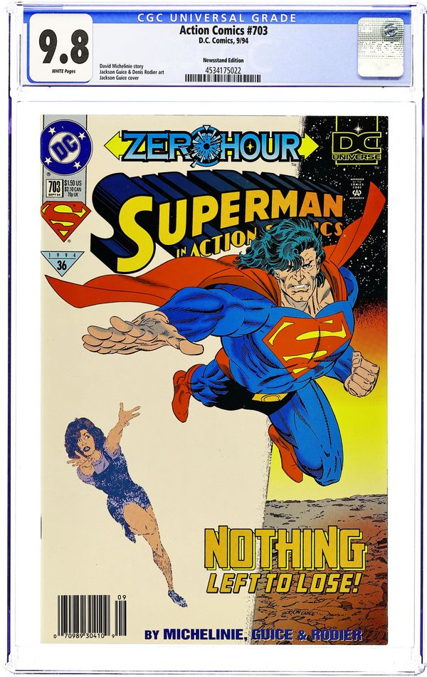 Newsstand Edition. ZERO HOUR's impact on the Man of Steel worsens when the timestream collapses...and the entire city of Metropolis blinks out of existence! Written by David Michelinie, with art by Jackson Guice and Denis Rodier. Cover by Guice. 36 Pages, Full Color. Cover price $1.50.