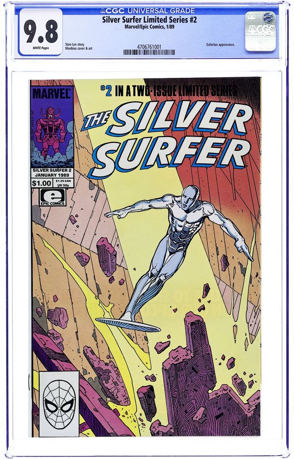 Direct edition. Cover by Moebius. Parable Part 2, script by Stan Lee, art by Moebius; The Silver Surfer decides to fight back and reveals Galactus as an opportunist. 36 pgs., full color. $1.00. Cover price $1.00.