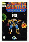 Tags: Infinity Gauntlet (part 4)$14.00Direct Edition. Part 4 of 6 - "Cosmic Battle on the Edge of the Universe!" Story by Jim Starlin. Art by Ron Lim, George Perez, Joe Rubinstein, Bruce N. Solotoff. The surviving heroes of Earth mount an all-out assault on the Mad Titan, Thanos, and the power of his Infinity Gauntlet. But do even the most powerful heroes in the Marvel Universe have enough might to topple this nigh-omnipotent madman? Meanwhile, the mysterious man known as Adam Warlock waits and watches in the wings. What could he possibly have up his sleeve? 48 pages. Cover price $2.50.