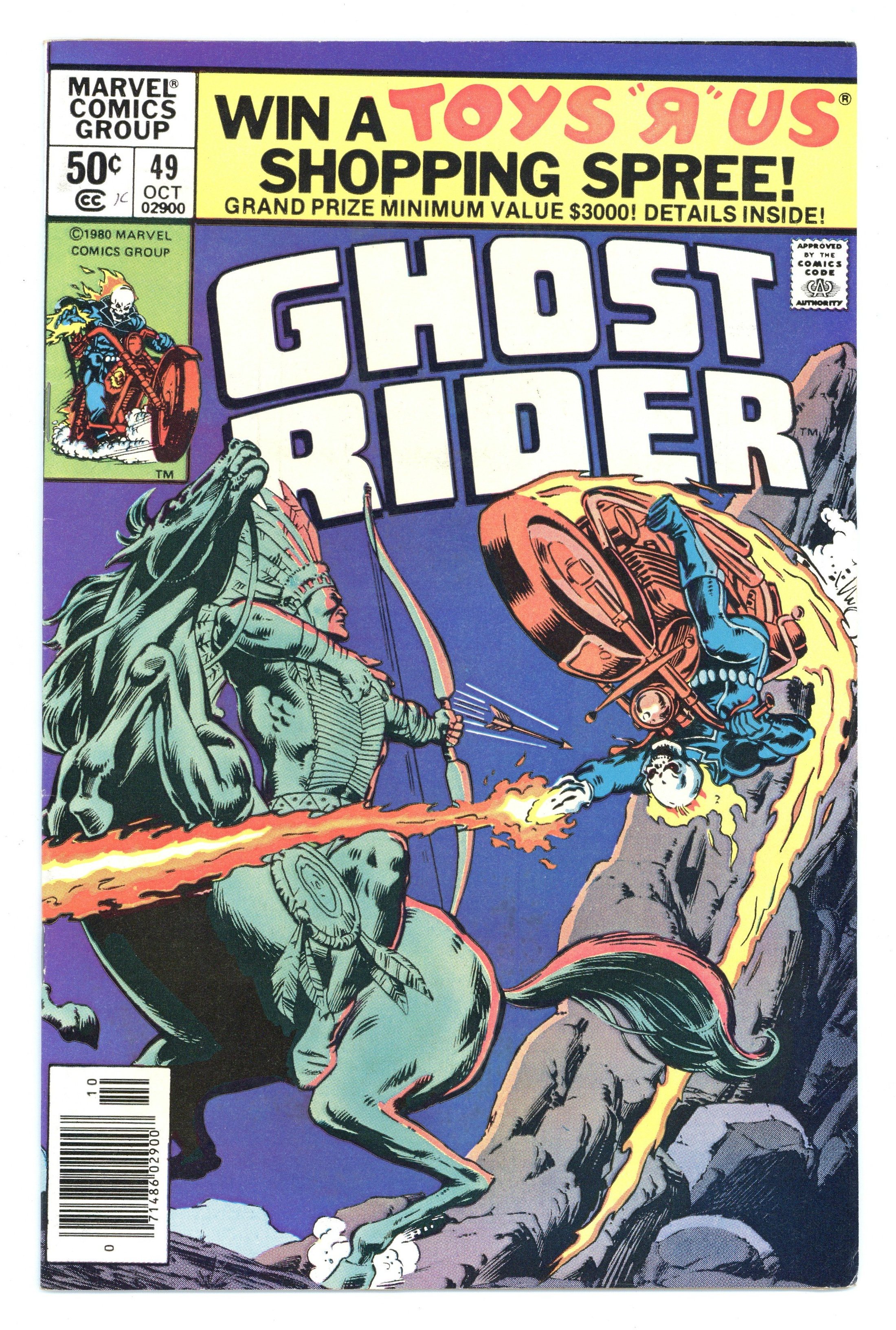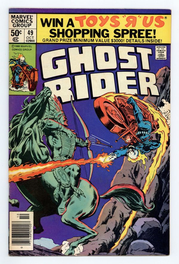 Newsstand Edition. "The Wrath of Manitou!" Story by Michael Fleisher. Art by Don Perlin. Cover by Bob Budianski and Joe Rubenstein. The Ghost Rider duels with a spectre that wants to destroy a local dam. Is the Spirit of Vengeance fighting for the right side? The Human Torch stars in Hostess ad "The Human Torch Saves the Valley!" Cover price $0.50.