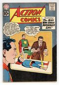 $35.50Cover pencils by Curt Swan, inks by Shelly Moldoff. "The Man Who Saved Kal-El's Life!", script by Robert Bernstein, art by Al Plastino; Superman meets Professor Dunn who visited Krypton and meet Jor-El before Krypton exploded. Using the Professor's "Matter-Radio" plans two crooks are on a crime spree. One-page Jerry the Jitterbug story by Henry Boltinoff. Did You Vote for a New Hair Style for Linda (Supergirl) Lee? illustration by Jim Mooney. "The Secret of the Time-Barrier!", script by Jerry Siegel, art by Jim Mooney; The effects of Lesla-Lar's ray have still stripped Supergirl of her powers, but when Superman takes her into the past it is discovered that her super powers return in other time periods. 36 Pages, Full Color. $.10 Cover price $0.10.