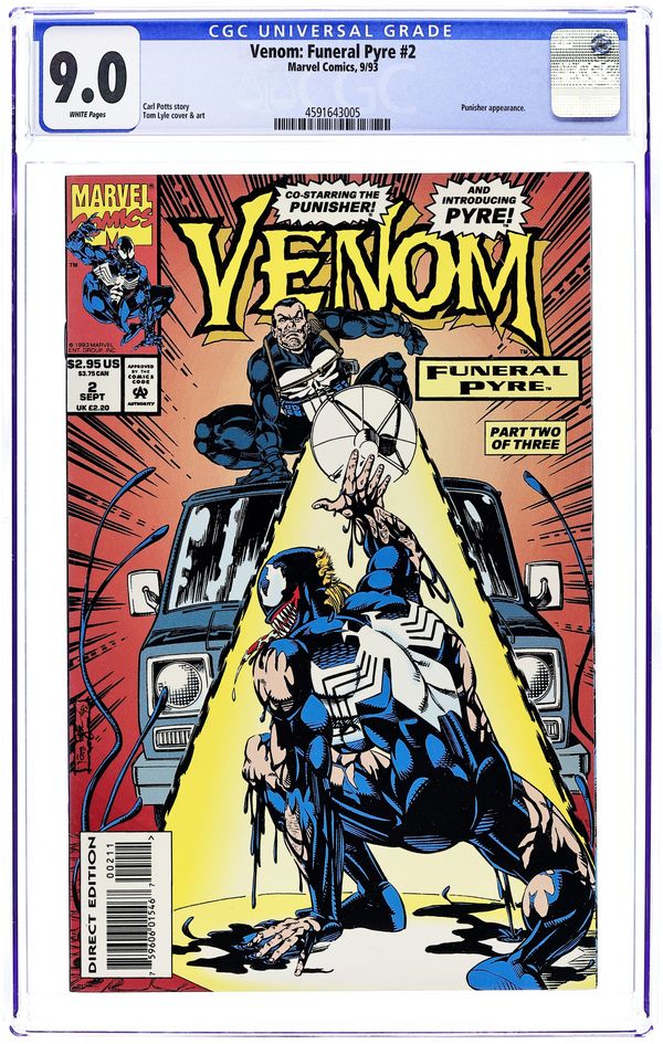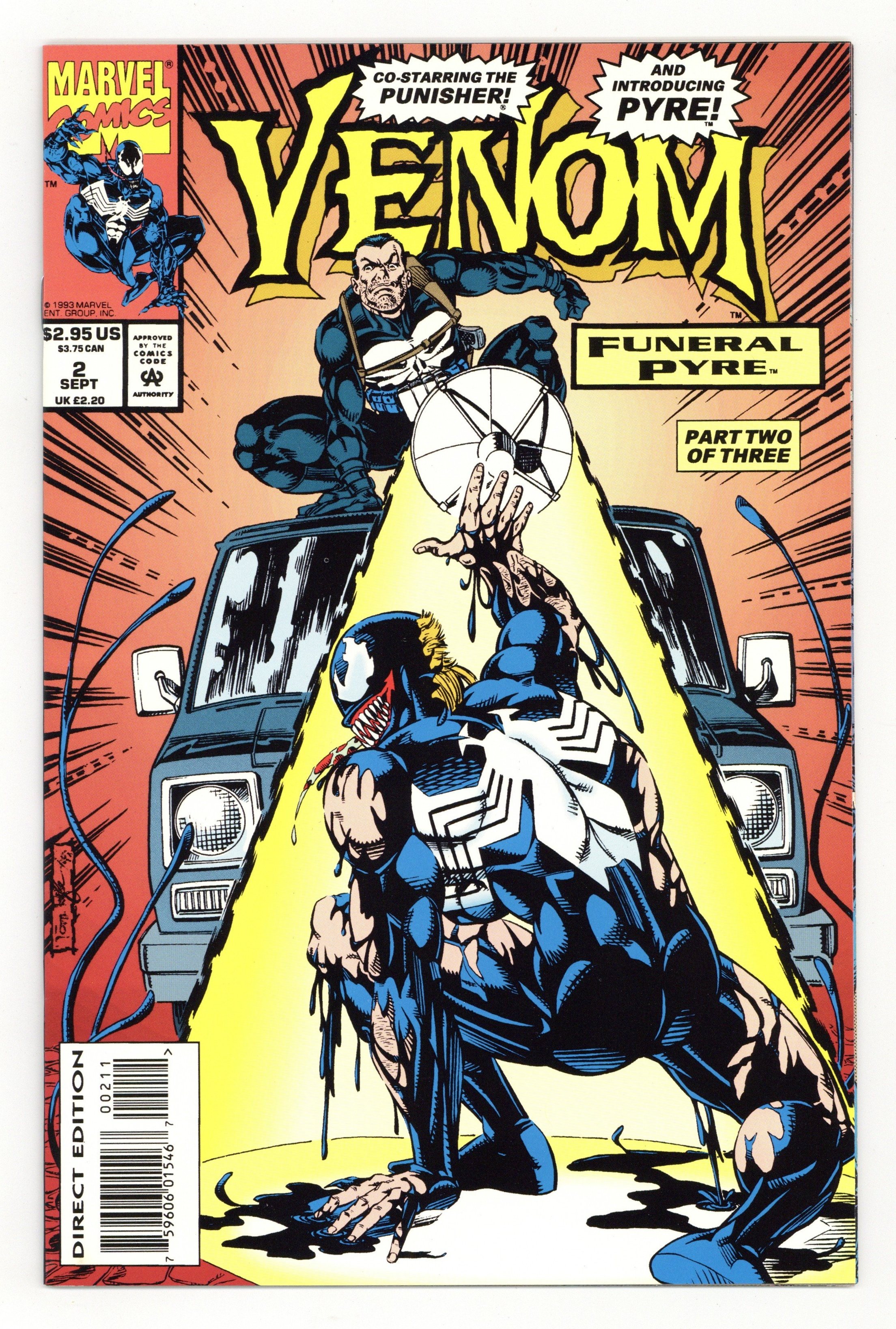 Direct Edition. The Punisher guest stars. When Venom and the Punisher team up to take on street gangs armed with super technology, they witness the birth of the new super villain, Pyre! Written by Carl Potts. Art by Tom Lyle, Joe Rubinstein and Al Milgrom. Cover by Tom Lyle. Cover price $2.95.