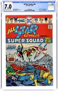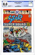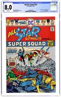 Tags: Justice League/Society$86.001st appearance of Power Girl. Cover art by Mike Grell. The Super Squad! starring the All Star Super Squad, script by Gerry Conway, pencils by Ric Estrada, inks by Wally Wood; Power Girl describes the Super Squad as a strike force composed of the JSA and the three younger heroes--Robin, Power Girl, and Star-Spangled Kid. Letters from Roy Thomas and Jerry Bails. The Captive Commissioner Hostess ad starring Batman, pencils by Curt Swan, inks by Vince Colletta. 36 Pages, Full Color. Cover price $0.25.