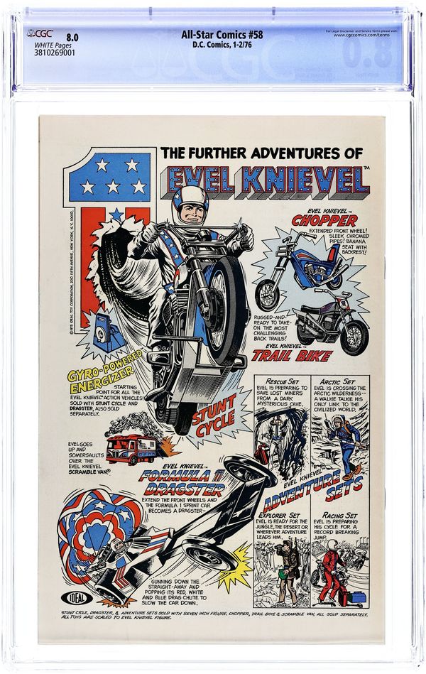 Tags: Justice League/Society$95.001st appearance of Power Girl. Cover art by Mike Grell. The Super Squad! starring the All Star Super Squad, script by Gerry Conway, pencils by Ric Estrada, inks by Wally Wood; Power Girl describes the Super Squad as a strike force composed of the JSA and the three younger heroes--Robin, Power Girl, and Star-Spangled Kid. Letters from Roy Thomas and Jerry Bails. The Captive Commissioner Hostess ad starring Batman, pencils by Curt Swan, inks by Vince Colletta. 36 Pages, Full Color. Cover price $0.25.