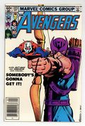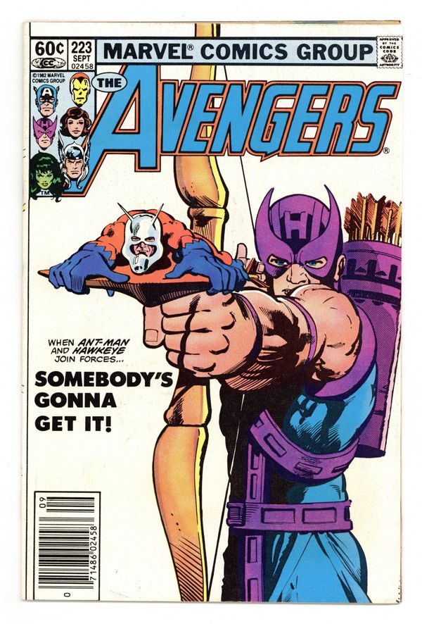 Tags: Avengers$17.50Newsstand Edition. "Of Robin Hoods and Roustabouts" Guest-starring Ant-Man. Script by David Michelinie. Pencils by Greg LaRocque. Inks by Brett Breeding and helpers. Cover by Ed Hannigan and Klaus Janson. On a sunny afternoon in Nassau County, Clint Barton and Scott Lang attend a traveling carnival. Scott is there having fun with his daughter enjoying the attractions, while Clint is following a lead concerning possible criminal activity! Hawkeye's and Ant-Man's paths collide when a super-villain is discovered at the carnival! It's the Taskmaster! The man with the photographic reflexes! And inside a giant circus tent, Ant-Man and the ace archer will try to cancel the Taskmaster's act! Cameo appearances by Captain America, Iron Man, She-Hulk, and the Wasp. (Notes: The Taskmaster previously appeared in Marvel Team-Up 103. The back cover features a Megaforce ad drawn by William Stout.) 36 pages Cover price $0.60.
