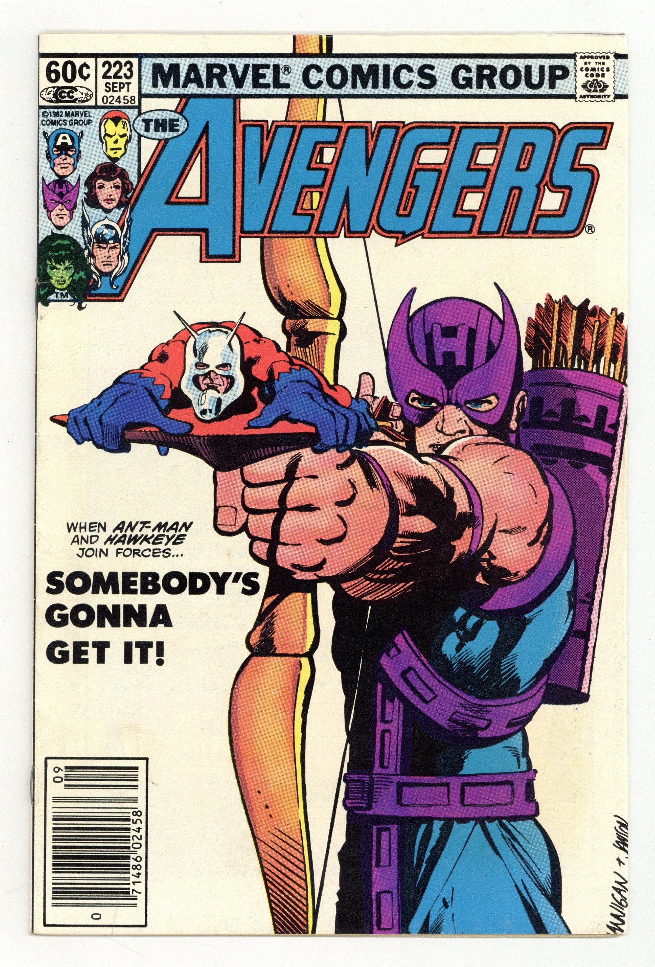 Tags: Avengers$11.50Newsstand Edition. "Of Robin Hoods and Roustabouts" Guest-starring Ant-Man. Script by David Michelinie. Pencils by Greg LaRocque. Inks by Brett Breeding and helpers. Cover by Ed Hannigan and Klaus Janson. On a sunny afternoon in Nassau County, Clint Barton and Scott Lang attend a traveling carnival. Scott is there having fun with his daughter enjoying the attractions, while Clint is following a lead concerning possible criminal activity! Hawkeye's and Ant-Man's paths collide when a super-villain is discovered at the carnival! It's the Taskmaster! The man with the photographic reflexes! And inside a giant circus tent, Ant-Man and the ace archer will try to cancel the Taskmaster's act! Cameo appearances by Captain America, Iron Man, She-Hulk, and the Wasp. (Notes: The Taskmaster previously appeared in Marvel Team-Up 103. The back cover features a Megaforce ad drawn by William Stout.) 36 pages Cover price $0.60.