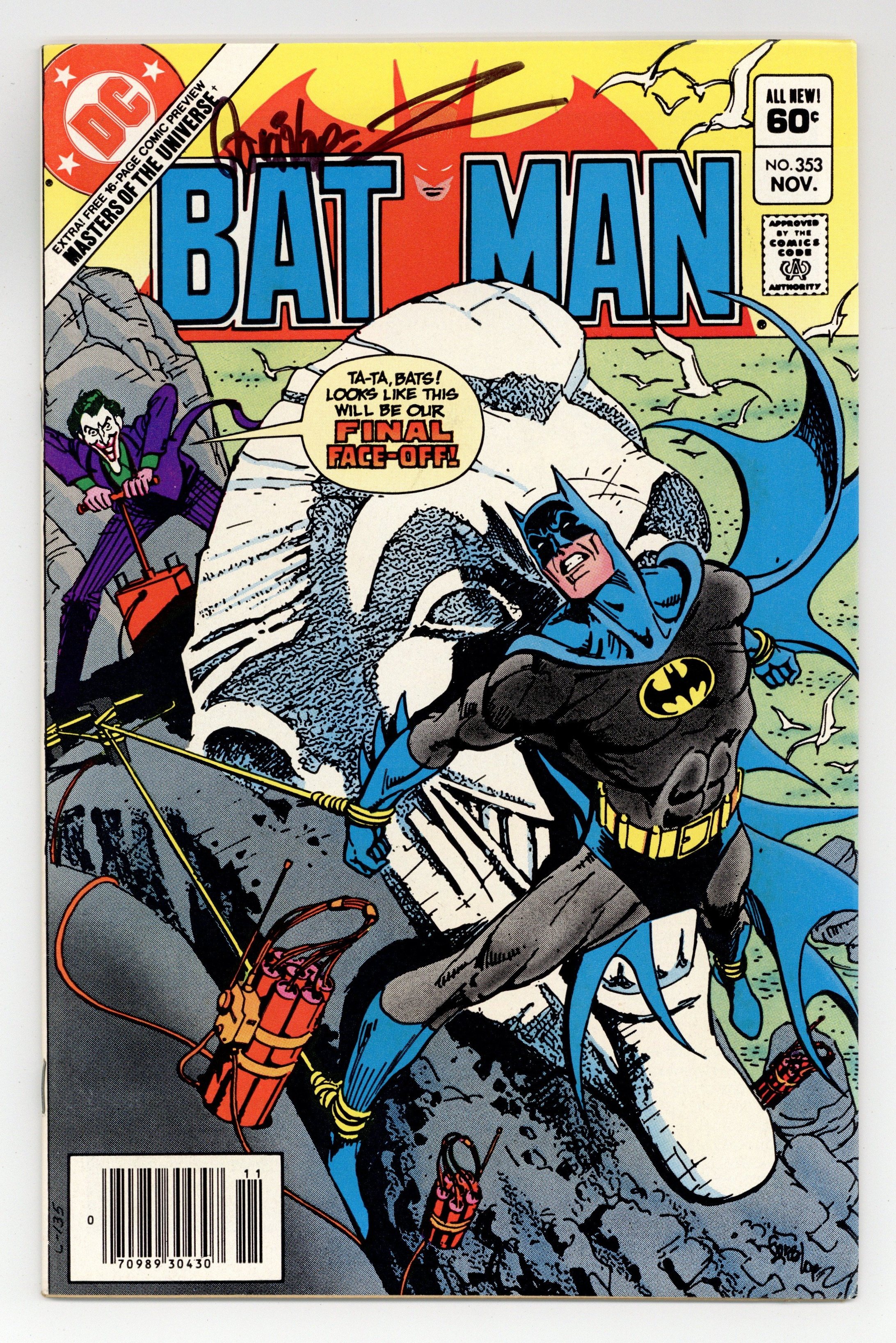 Tags: Batman$38.00First Printing. Newsstand Edition. Cover art by Jose Luis Garcia-Lopez. "Last Laugh," script by Gerry Conway, pencils by Jose Luis Garcia-Lopez, inks by Dan Adkins; After getting Arthur Reeves to confess that Rupert Thorne gave him doctored photos of the Batman's "secret identity", Batman goes after the Joker, is captured, and finds himself tied to the side of a cliff in New Jersey set to explode in the shape of giant Joker-bust that the Clown Prince of Crime so dearly wants but is thwarted by the caped crusader. 15-page Masters of the Universe preview insert co-starring Superman: "Fate is the Killer" by Paul Kupperberg, Curt Swan & Dave Hunt. "The Sting--Batman Style," script by Mike Barr, pencils by Don Newton, inks by Dennis Jensen; Robin is conned into endorsing a phony fund drive for the Gotham Boys League; However, after the crooks rob the money from the Boys League headquarters, Robin decides to bring them in on his own; Batman helps by acting like a fellow con man. 52 Pages, Full Color. Cover price $0.60.