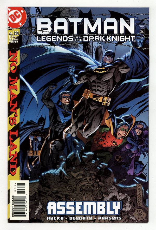 Tags: Batman No Man's Land (part 26)$24.00WRITTEN BY GREG RUCKA; ART BY MIKE DEODATO, JR. AND SEAN PARSONS; COVER BY DALE EAGLESHAM AND SEAN PARSONS. Batman gathers his forces in "Assembly," a self-contained story that represents a critical turning point in the battle to reclaim "No Man's Land," beginning with the revelation of Batgirl's true identity! The Dark Knight has alienated those who once trusted him with their lives ? Robin, Nightwing and Oracle among them. After unmasking the new Batgirl and replacing her with another mysterious heroine and summoning Azrael to his side, Batman must now regain his former allies' trust and co-ordinate their efforts if his plan to regain control of Gotham is to succeed. (Note: Other aspects of the "Assembly" are revealed in NIGHTWING #34 and ROBIN #64, found elsewhere in this issue of Previews). FC, 32 PG.$1.99*" Cover price $1.99.