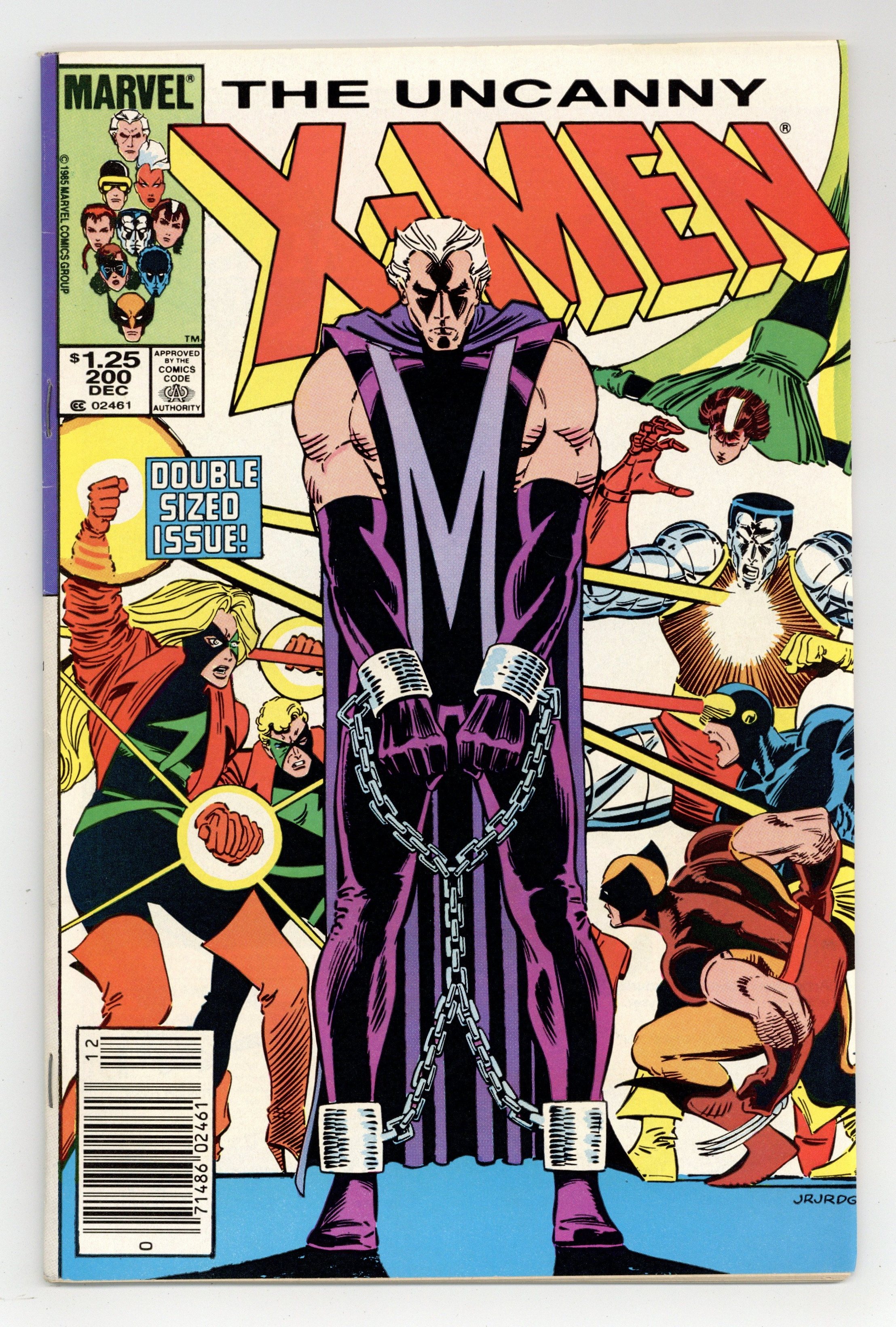 Newsstand Edition. "The Trial of Magneto!" Guest-starring Lilandra, Binary, and the Starjammers. Story by Chris Claremont. Art by John Romita, Jr. and Dan Green. For his crimes against humanity, Magneto will be put on trial. Can the X-Men keep extremists from disrupting the trial thus sparking a mutant/human war?! Plus, a mortally wounded Charles Xavier forces Magneto to make a decision that will change the X-Men's lives forever! NOTE: 1st appearance of Fenris. 52 pgs. Cover price $1.25.