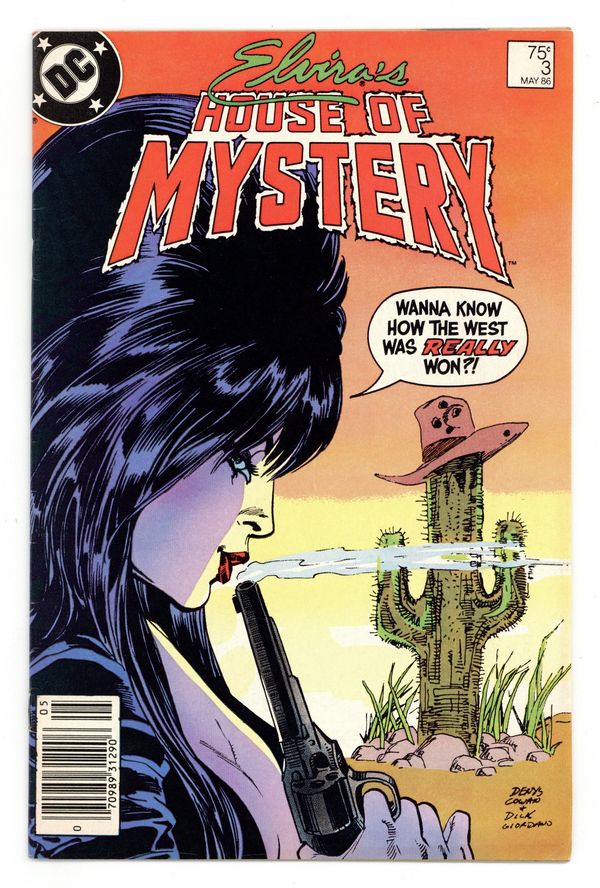 $16.50Newsstand Edition. Cover by Denys Cowan and Dick Giordano. Written by Robert Kanigher and Joey Cavalieri. Art by Angel Trinidad, Jr., Jess Jodloman, Stan Woch and Dick Giordano. Featuring "Ballad of Hanging Rock" by Robert Kanigher and Angel Trinidad, Jr., and "One Way Passage" by Kanigher and Jess Jodloman. Plus: Elvira goes to hell and back in "Retribution," a framing sequence by Joey Cavalieri, Stan Woch and Dick Giordano. 32 pages, full color. Note: This issue was not approved by the Comics Code Authority. Cover price $0.75.