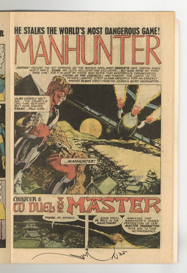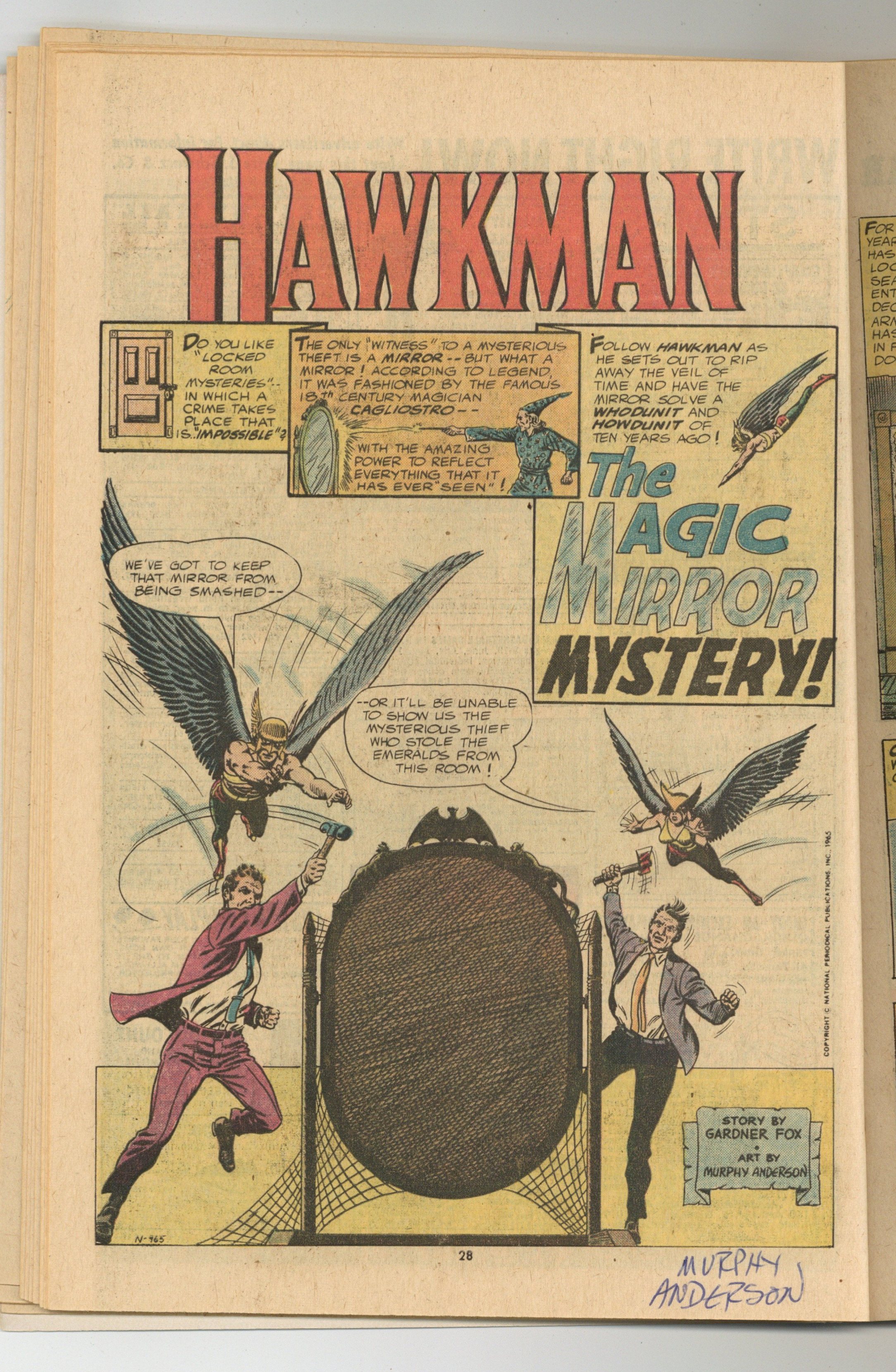 100 Page Super Spectacular. New Batman story, "Death Flies the Haunted Sky!" (script by Archie Goodwin, art by Alex Toth). New Manhunter story, "To Duel the Master" (script by Goodwin, art by Walt Simonson). The rest is reprints: the Newsboy Legion in "The House Where Time Stood Still" (from Star-Spangled Comics 21; art by Joe Simon and Jack Kirby), Hawkman in "The Magic Mirror Mystery" (from Hawkman 10; script by Gardner Fox, art by Murphy Anderson), the Black Canary in her first solo adventure, "The Huntress of the Highway" (from Flash 92; pencils by Carmine Infantino, inks by Frank Giacoia), the Elongated Man in "The Robbery That Never Happened" (from Detective 333; script by Fox, pencils by Infantino, inks by Sid Greene), Batman and Robin in "Vanishing Village" (from Batman 31), and Doctor Fate in an untitled story (from More Fun 68; art by Howard Sherman). Pat Broderick contents page illustration. Jim Aparo cover. 100 pgs. Cover price $0.60.