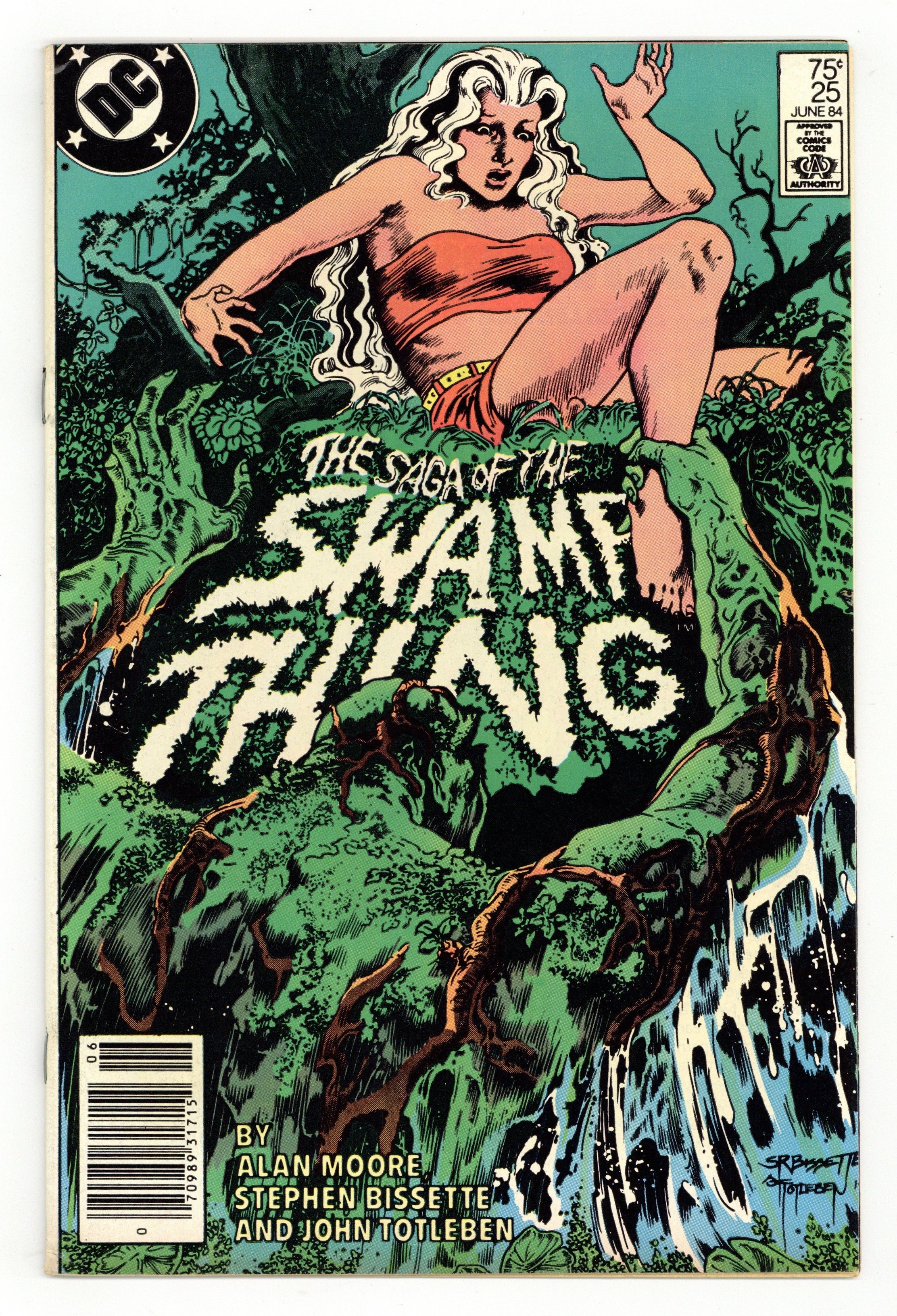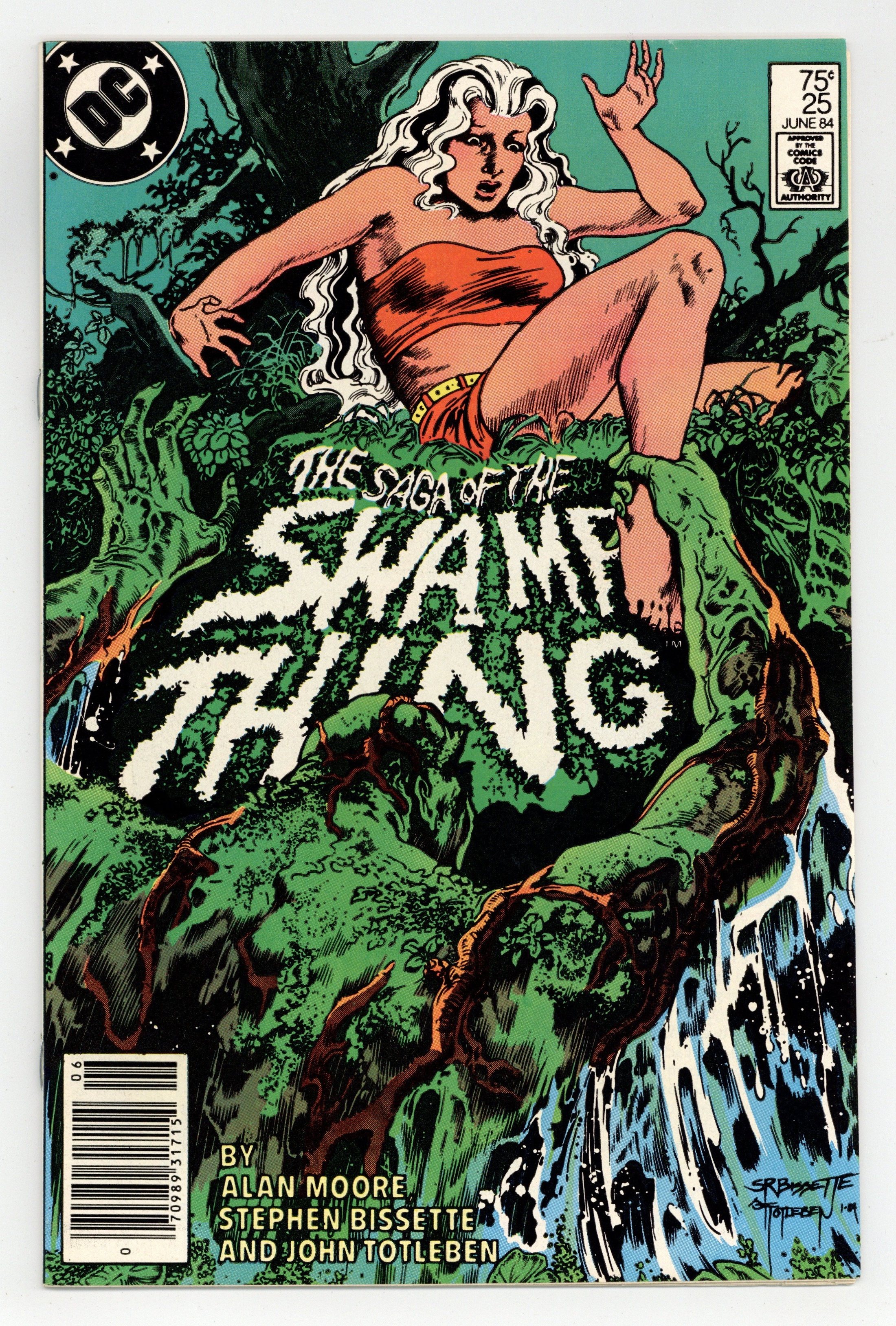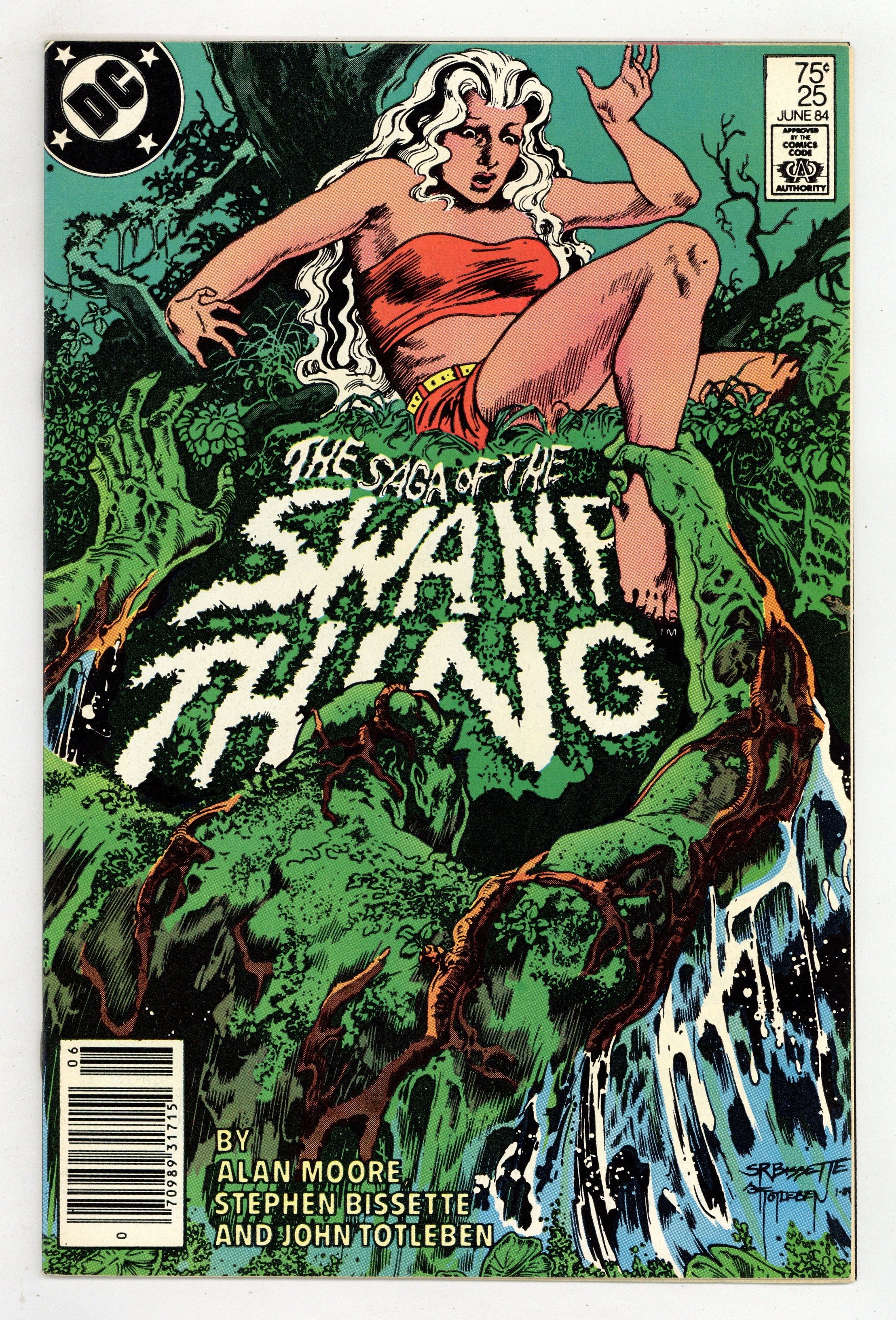 Newsstand Edition. Cover by Stephen R. Bissette and John Totleben. The Sleep of Reason..., script by Alan Moore, art by Stephen R. Bissette and John Totleben; Using a Ouija board, Chris and Jenny (Pauls parents) release the Monkey King, who adopts Paul as his master; Jason The Demon Blood goes to Baton Rouge; Abby gets a new job at Elysium Lawns; The Monkey King, getting stronger, is ready to attack again; John Constantine cameo. NOTE: See Swamp Thing (1982 2nd Series) #37 for Constantine's first full appearance. Part 1 of 3. 36 pgs., full color. $0.75. Cover price $0.75.