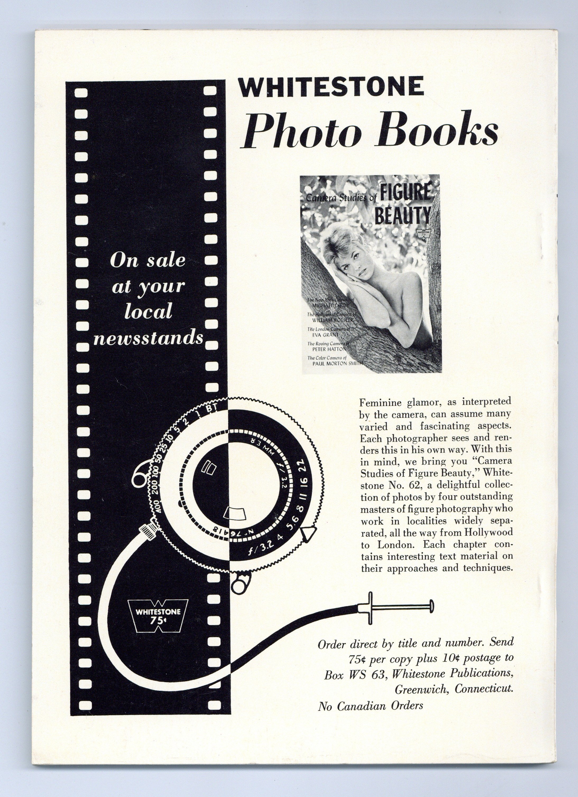 Published 1965 by Whitestone Publications.$80.00No. 63 in the Whitestone Photography Series. 6.5" x 9.25", 112 pages, B&W. MATURE Cover price $0.75.