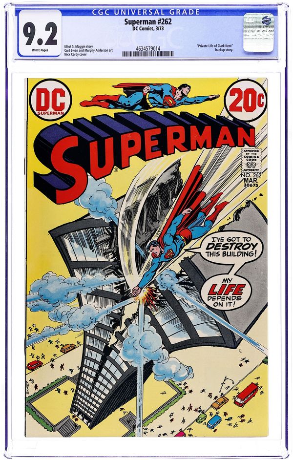 Cover art by Nick Cardy. The Skyscraper That Screamed for Its Life! starring Superman, script by Elliot S! Maggin, pencils by Curt Swan, inks by Murphy Anderson; Superman fights a ghostly spirit that occupies a building. Puzzle of the Telepathic Twins!--Private Life of Clark Kent, script by Elliot S! Maggin, pencils by Curt Swan, inks by Murphy Anderson; Clark Kent tries to boost the ratings of the Stranger Than Fiction show by booking a pair of sisters with ESP powers. 36 Pages, Full Color. Cover price $0.20.