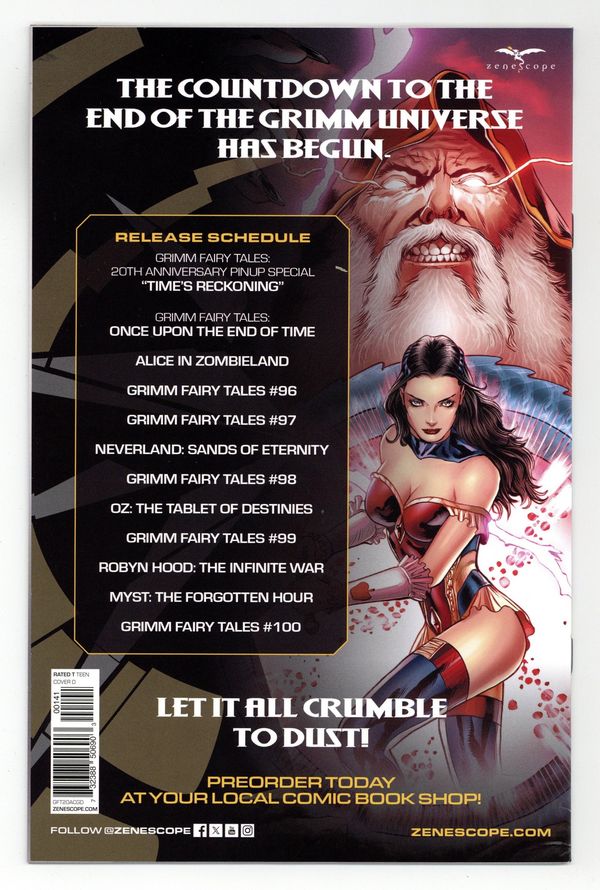 Published Jun 2025 by Zenescope Entertainment.$30.00Limited 1 for 20 Retailer Incentive Variant Cover. Art by Various. Cover by Maria Laura Sanapo. Please join us as we celebrate our milestone anniversary with a very special collection of iconic covers that have graced our issues over the past two decades. Featuring the work of industry greats J. Scott Campbell, Dave Finch, Artgerm and many more, this is a celebration that can't be missed! 40 pages, full color. Rated T Cover price $10.00.