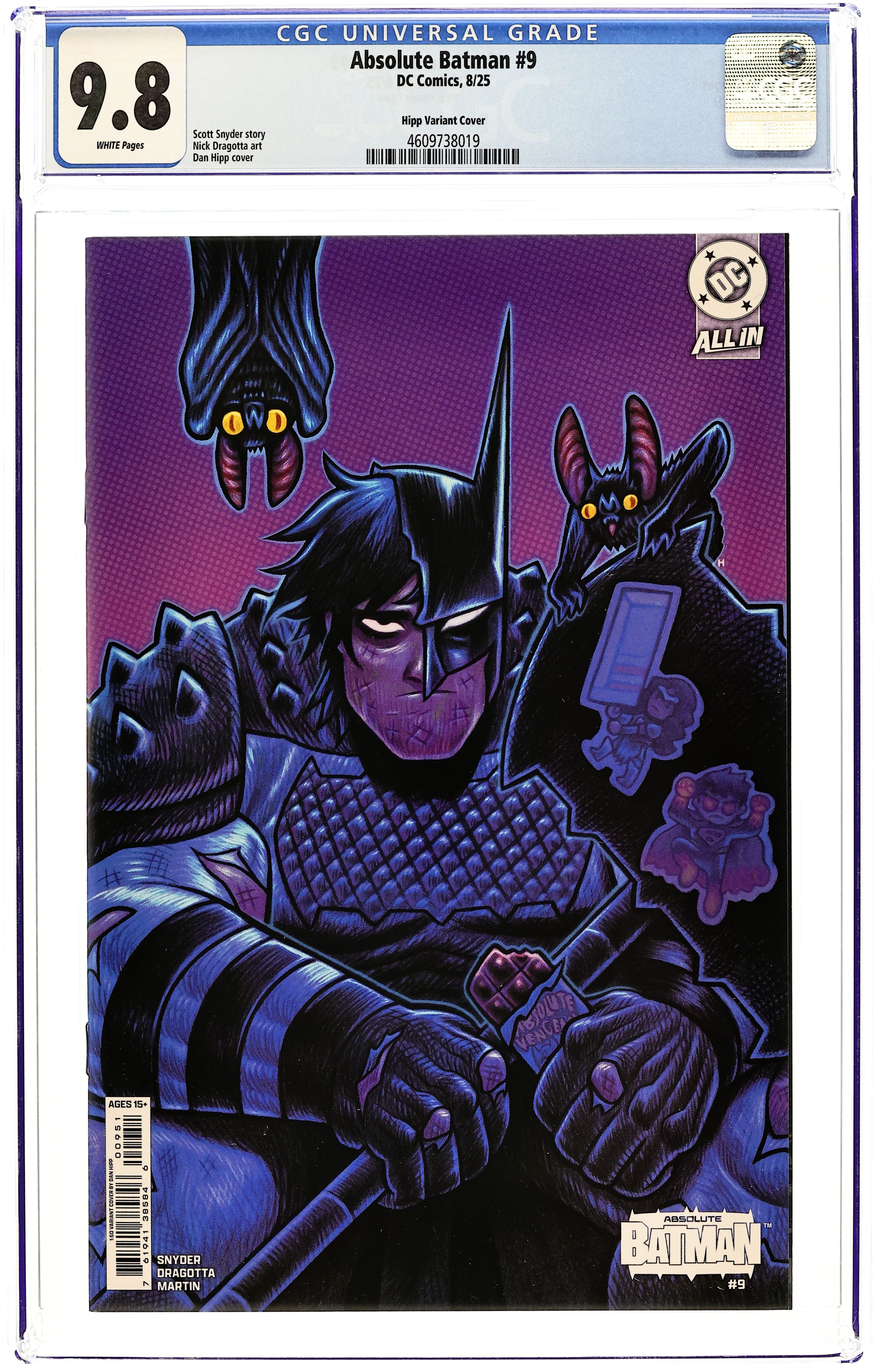 Limited 1 for 50 Retailer Incentive Variant Cover. Written by Scott Snyder. Art by Nick Dragotta. Cover by Dan Hipp. AN ALL NEW ARK (M) STARTS HERE! The latest development in saving the derelict and despondent of our society is a facility known as Ark M--a fully operational institution that has played a rather sizeable part, on purpose or not, in the creation of evil. And it's active. So when Bruce tries infiltrate it and distill its secrets, a new villain from Gotham City arrives to deal with the problem...an old adversary of Alfred's...a man known only as Bane. 32 pages, full color. Rated T+ Cover price $5.99.