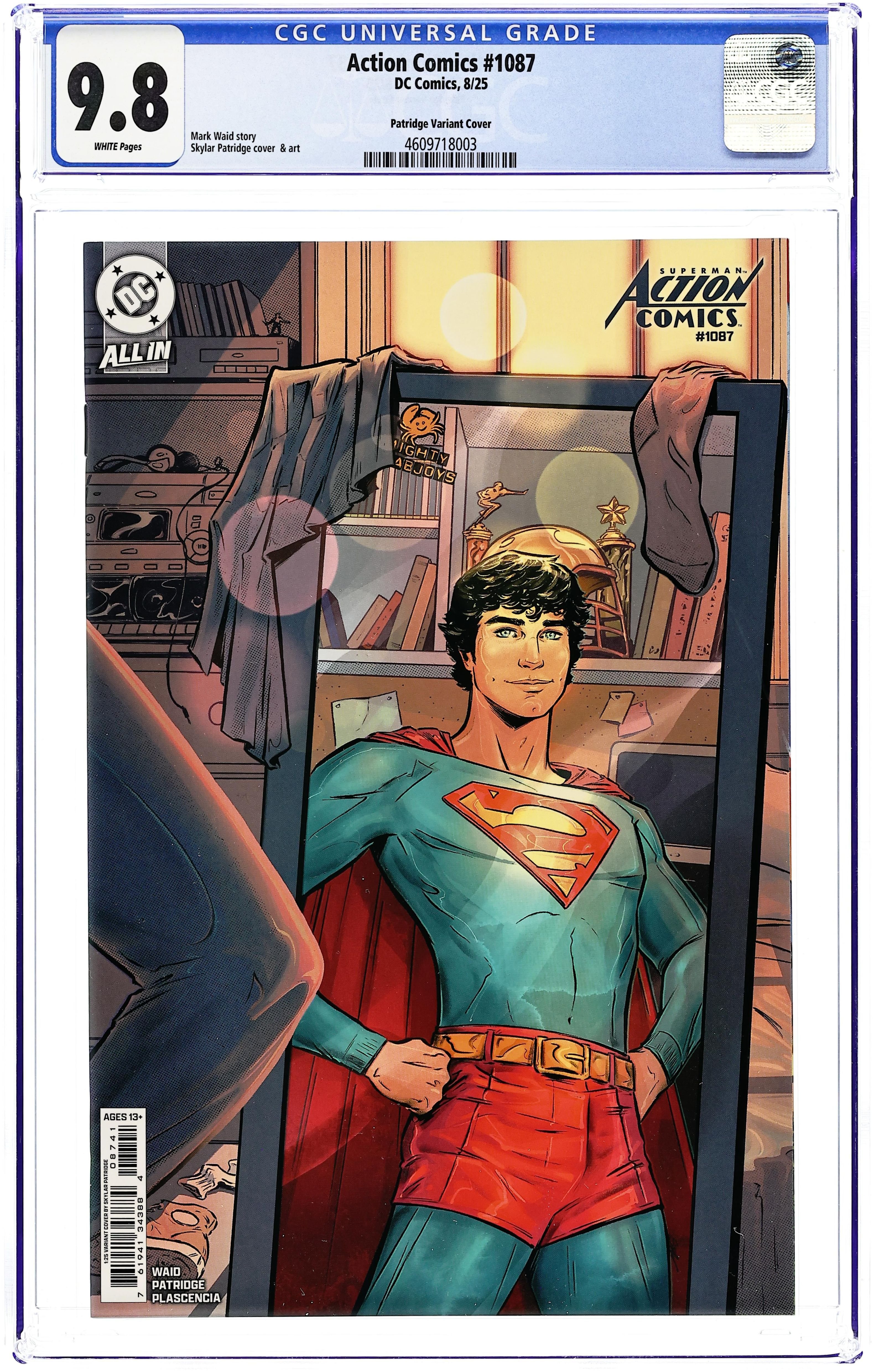 Limited 1 for 25 Retailer Incentive Variant Cover. Written by Mark Waid. Art by Skylar Patridge. Cover by Skylar Patridge. SUPERBOY RETURNS WITH CREATORS MARK WAID AND SKYLAR PATRIDGE! Witness Mark Waid's triumphant return to the title alongside rising star artist Skylar Patridge as they take Clark Kent back to his early years on Kent Farm. This can't-miss story, with ties to the present, takes the Boy of Steel to unexpected heights as he figures out what being a hero truly means. First stop: Metropolis's Expo of Tomorrow! Will Clark be able to blend into the crowd, or is Superboy about to make his public debut?! 32 pages, full color. Rated T+ Cover price $5.99.
