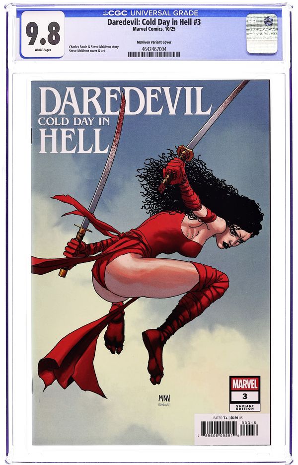 Limited 1 for 25 Retailer Incentive Variant Cover. Written by Charles Soule. Art by Steve McNiven. Cover by Steve McNiven. The DAREDEVIL project of the decade reaches its epic conclusion. As NYC goes dark, who will stand up with Daredevil? Will you? 40 pages, full color. Rated T+ Cover price $6.99.