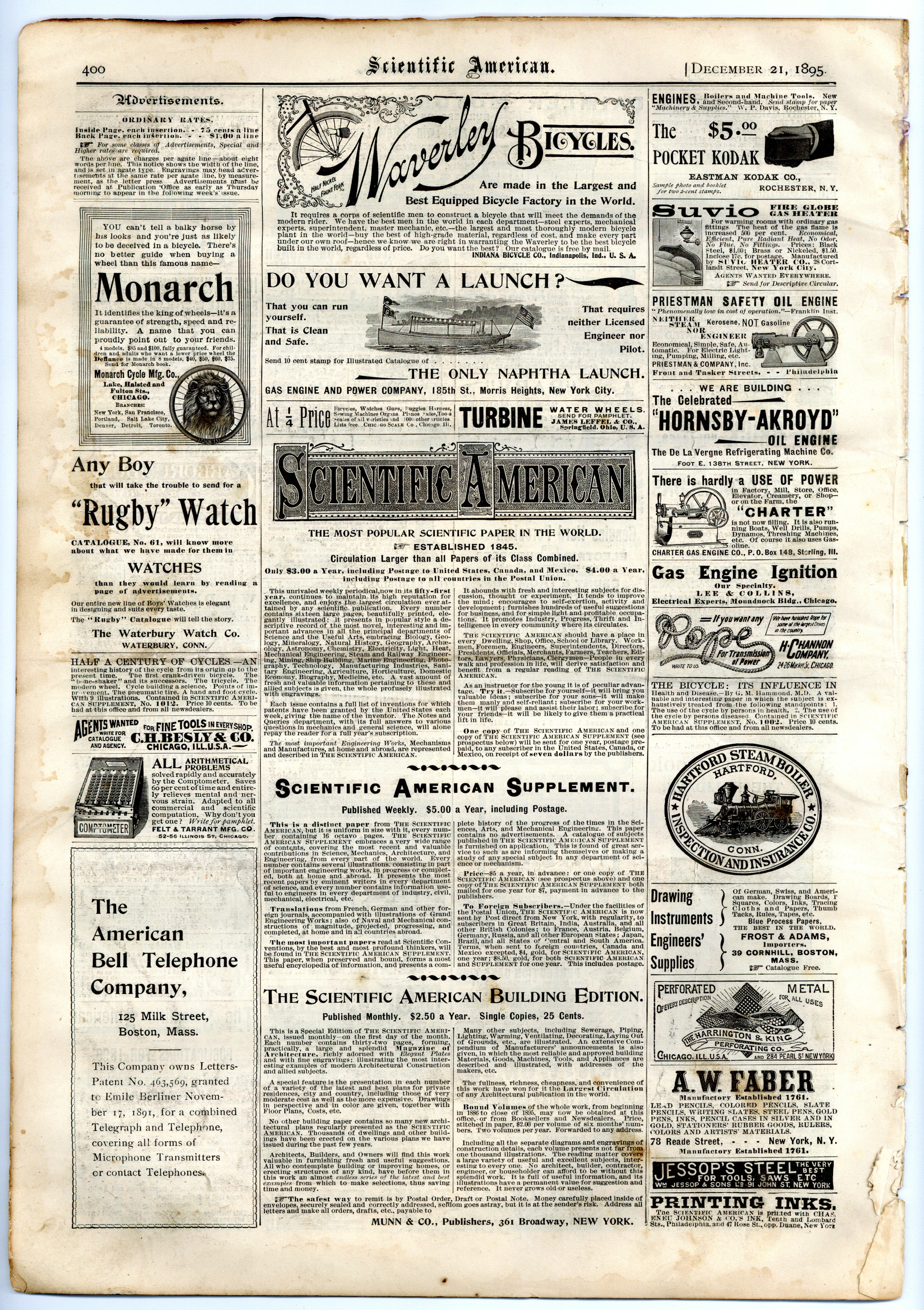 Published Oct 1895 by Scientific American, Inc..$34.00- Spine split 30%. Water damage: Moderate.