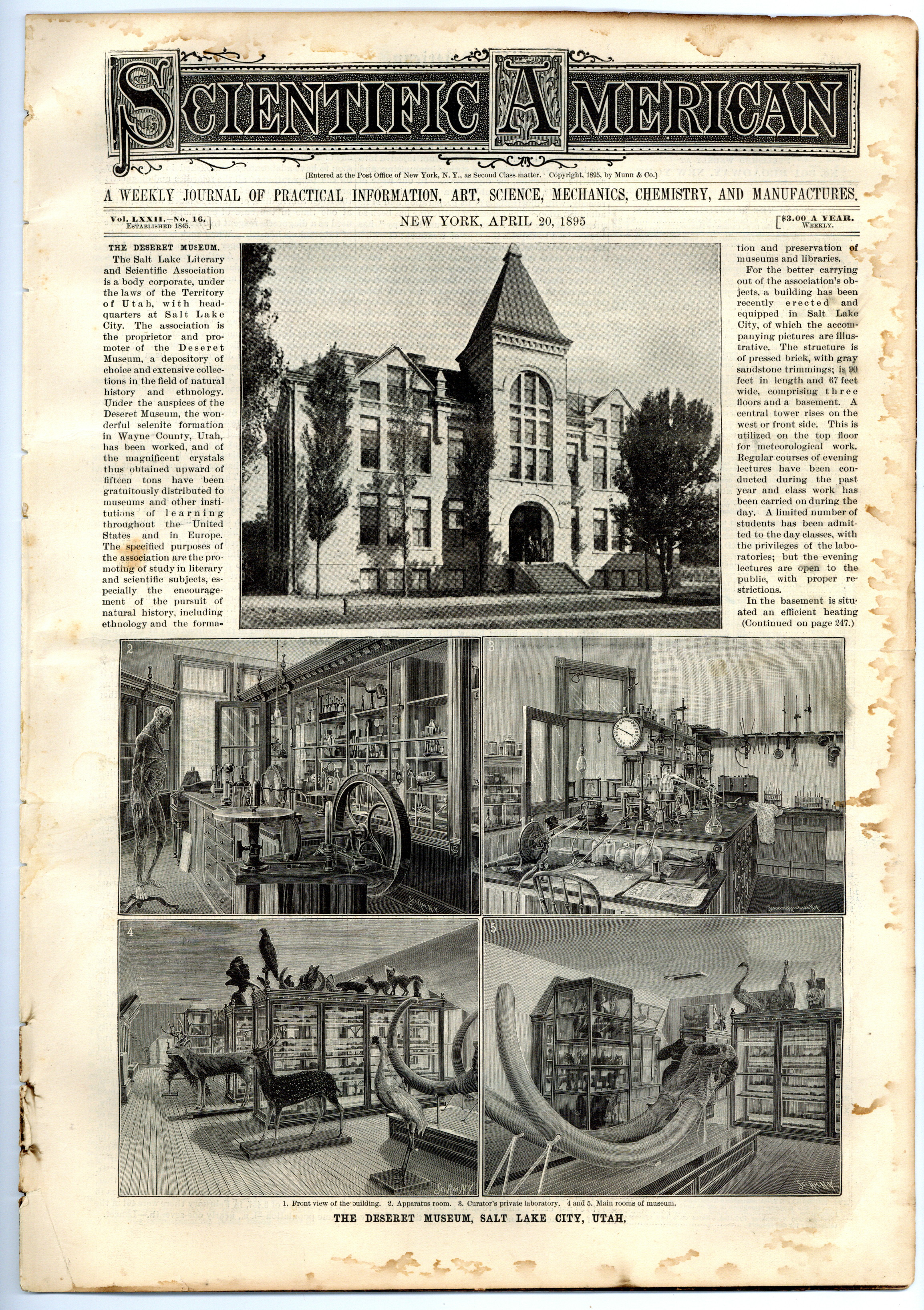 Published Apr 1895 by Scientific American, Inc..$34.00- Spine split 30%. Water damage: Moderate.