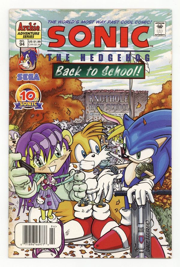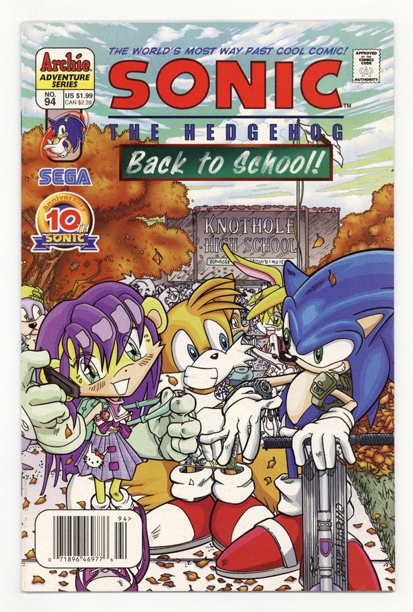 Published Apr 2001 by Archie Publications.$22.00Newsstand Edition. Story by Karl Bollers and Ken Penders. Art by James Fry, Pam Eklund, Ron Lim, and Ken Penders. "New Order 2": As beautiful as the new Knothole Village is, Sonic just can't adjust to it knowing that Robotnik's presence and that of the Overlanders persists in Robotropolis. For his part, Elias has chosen the path of peace, electing to focus on turning Knothole into a permanent habitat rather than trying to reclaim Robotropolis. By issue's end, however, dark alliances shall be made and peril shall befall the Freedom Fighters in the form of both natural disasters and wicked enemies! It isn't long before Sonic gets a chance to switch back to "hero" mode! FC, 32pg Cover price $1.99.