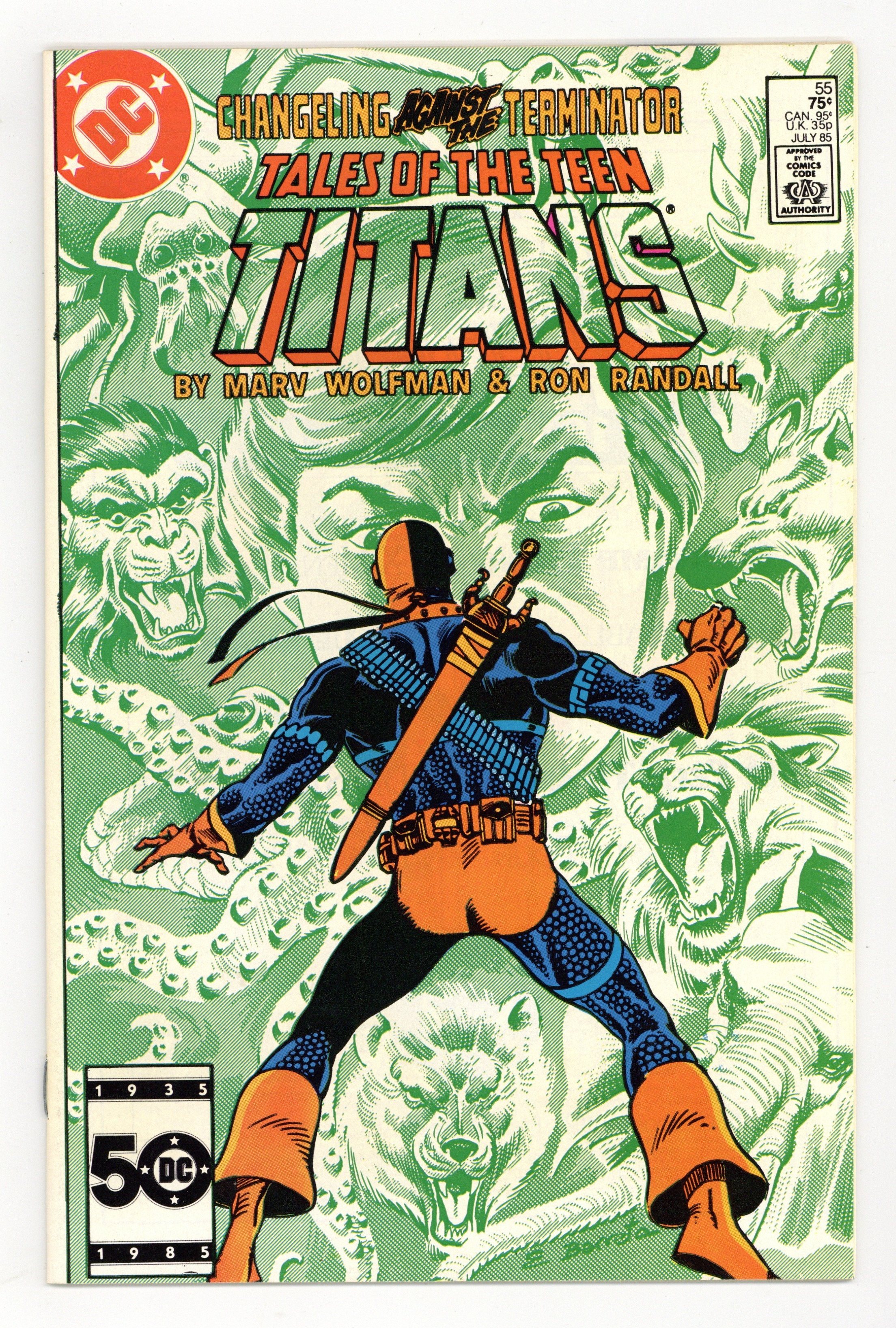 Tags: Teen Titans$9.30Direct Edition. Slade Wilson (aka Deathstroke the Terminator) and Changeling take a rather...unique approach to work out their differences in "Shades Of Gray!" Part 3 of 3, continued from the previous issue. Script by Marv Wolfman, art by Ron Randall. Eduardo Barreto cover. Cover price $0.75.