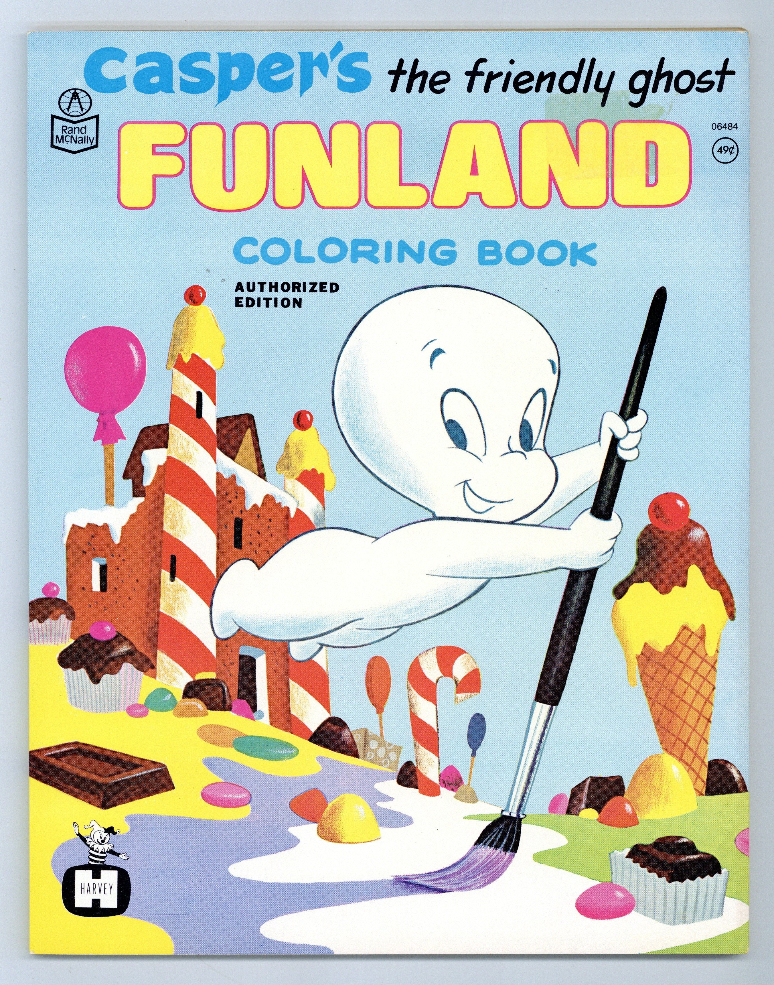 Coloring book featuring Casper the Friendly Ghost. 8-1/2" x 10-3/4", 64 pages, B&W. Cover price $0.49.
