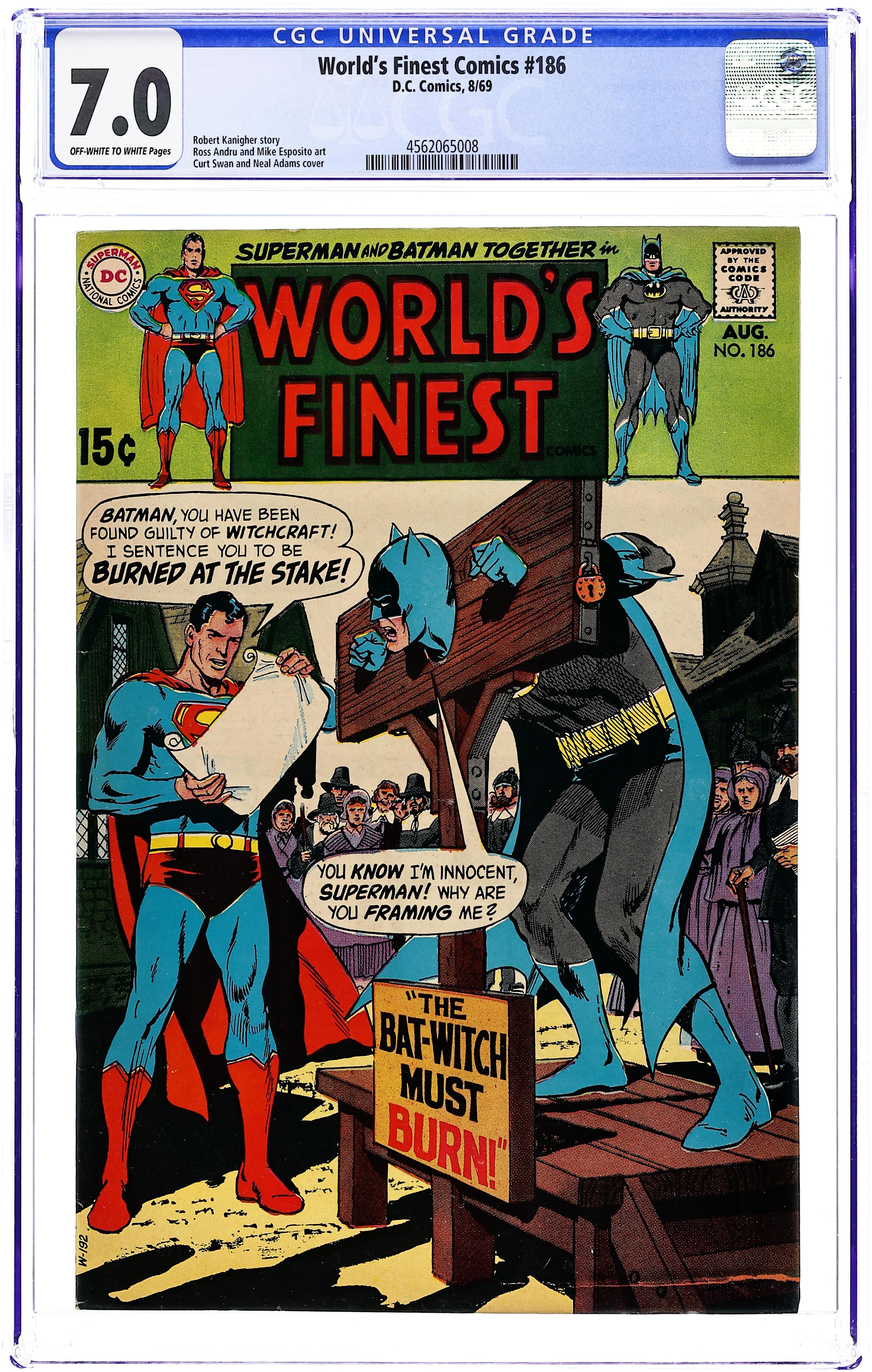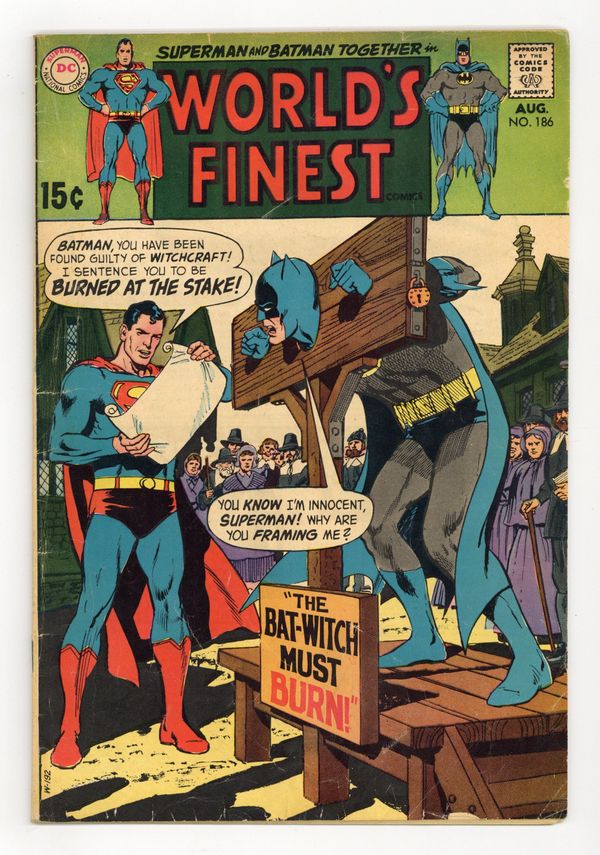 Tags: Superman$13.00Cover pencils by Curt Swan, inks by Neal Adams. The Bat Witch! starring Superman and Batman, script by Robert Kanigher, pencils by Ross Andru, inks by Mike Esposito; Superman and Batman travel to the 18th century to investigate Bruce Wayne's ancestor, who wears a cowl like Batman's. The Human Hot-Rodders! starring Johnny Quick, script by Otto Binder. 36 Pages, Full Color. Cover price $0.15.