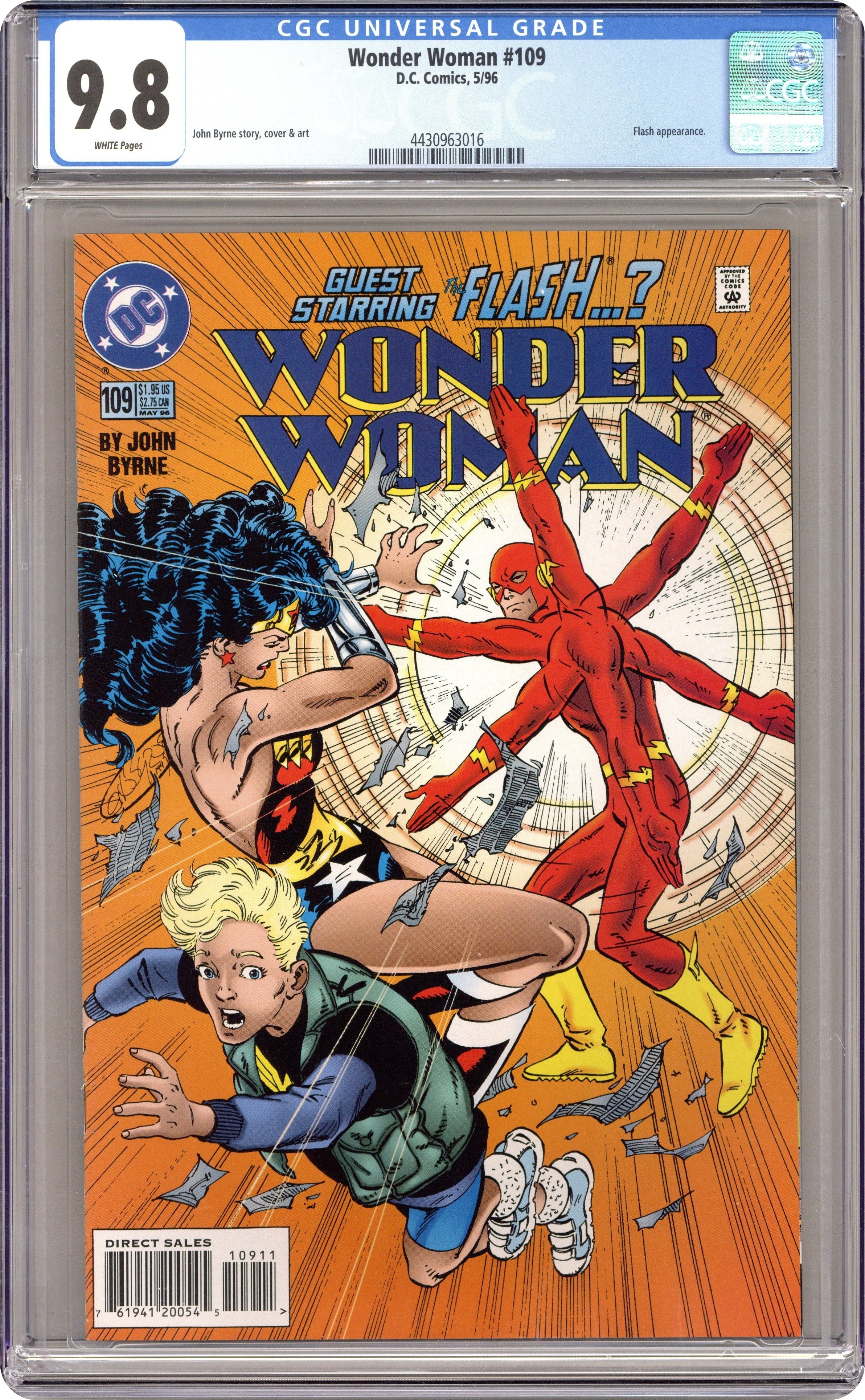 Level: Part 1 of 4 – "Guest-starring Flash?!" Story and art by John Byrne. A lunch date with friends turns weird as Gateway City is suddenly menaced by the super-speeding mayhem of the Flash…but the face behind the scarlet mask is that of a man long thought dead! Also, the mysterious hero known as "Champion," who will have a profound effect on Dianas life, makes his debut! 36 pages, FC. Cover price $1.95.