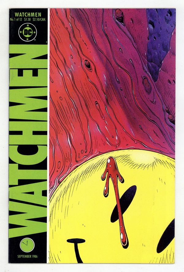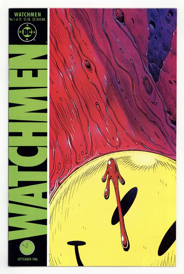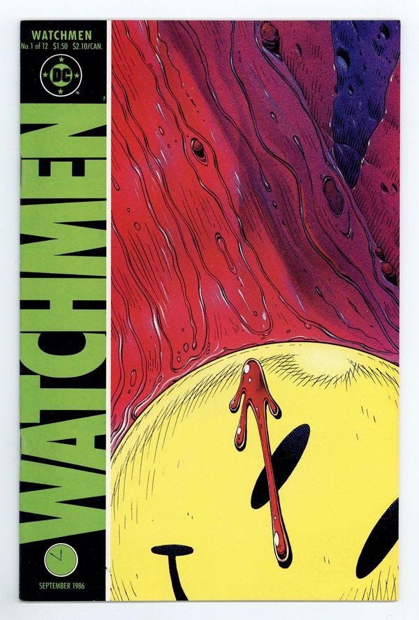 Starts Later today Alan Moore's classic take on the superhero genre. Widely considered to be one of the greatest stories in modern comics history. Art by Dave Gibbons. 1st appearance Rorschach, Ozymandias, Dr. Manhattan, Silk Spectre & Nite Owl. Death of the Comedian. Cover price $1.50.