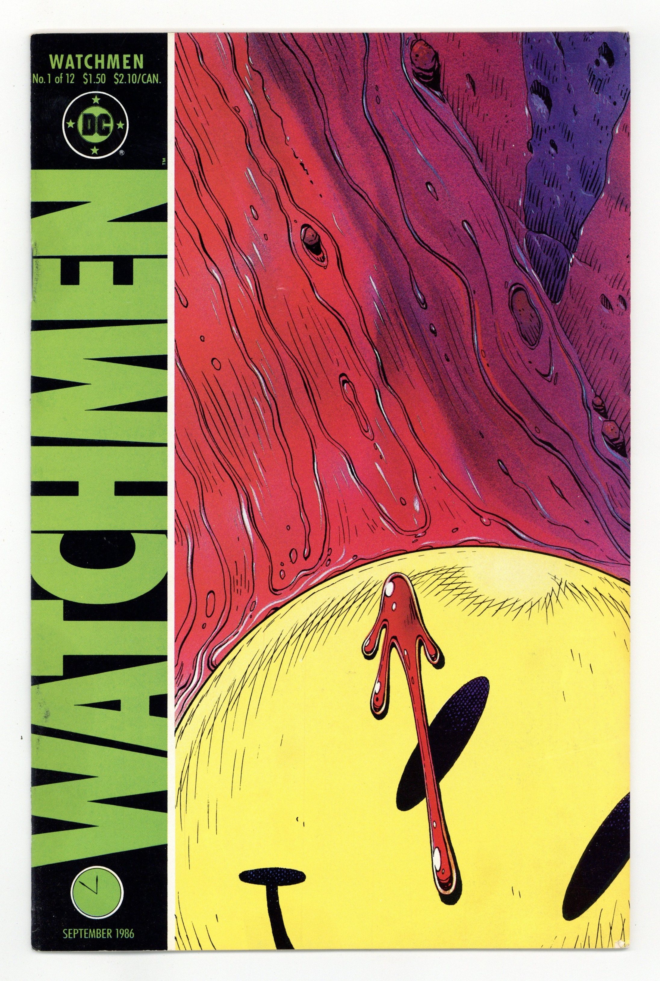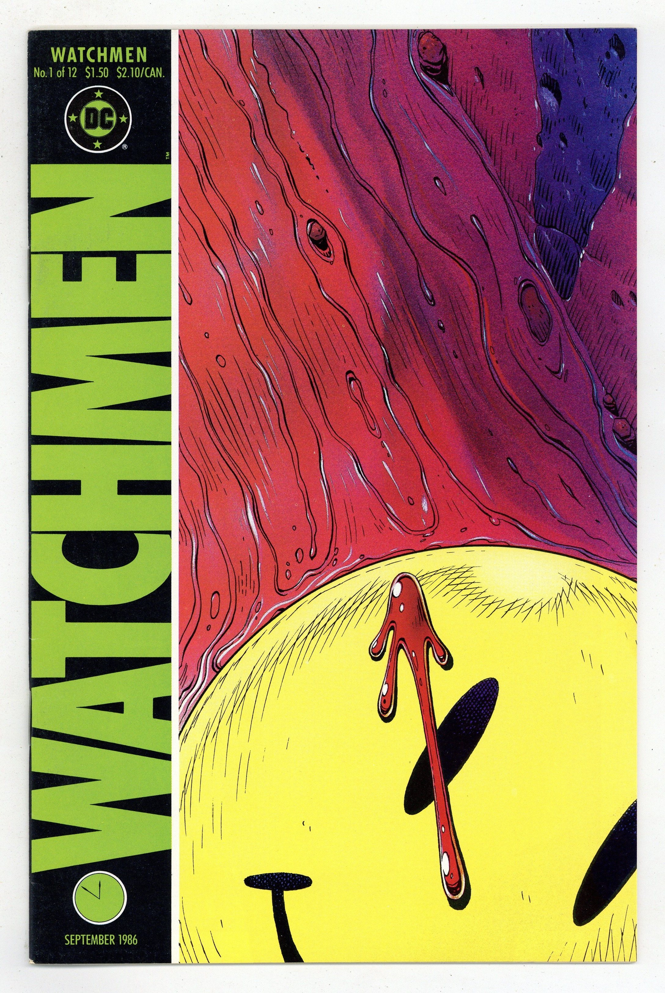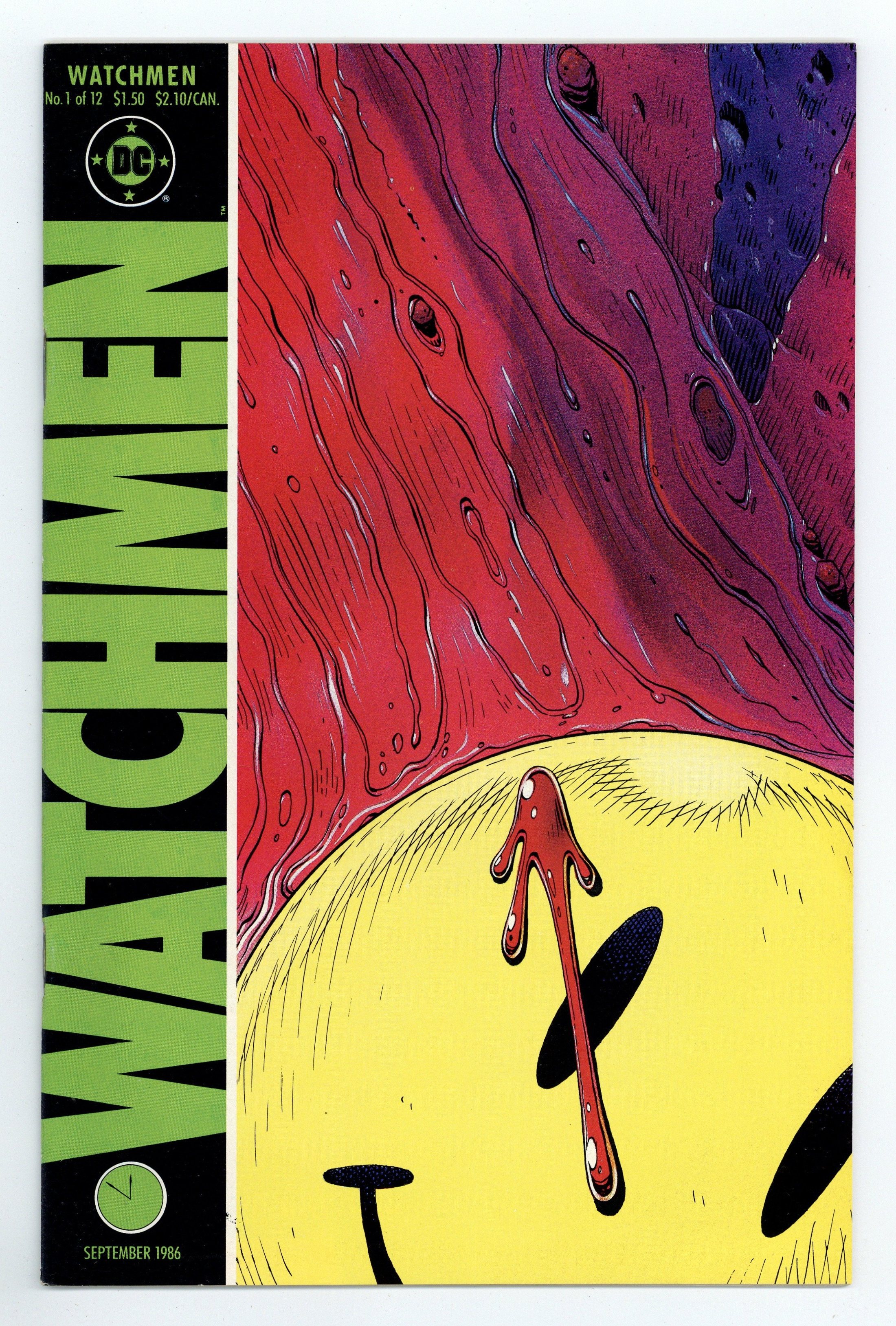 Alan Moore's classic take on the superhero genre. Widely considered to be one of the greatest stories in modern comics history. Art by Dave Gibbons. 1st appearance Rorschach, Ozymandias, Dr. Manhattan, Silk Spectre & Nite Owl. Death of the Comedian. Cover price $1.50.