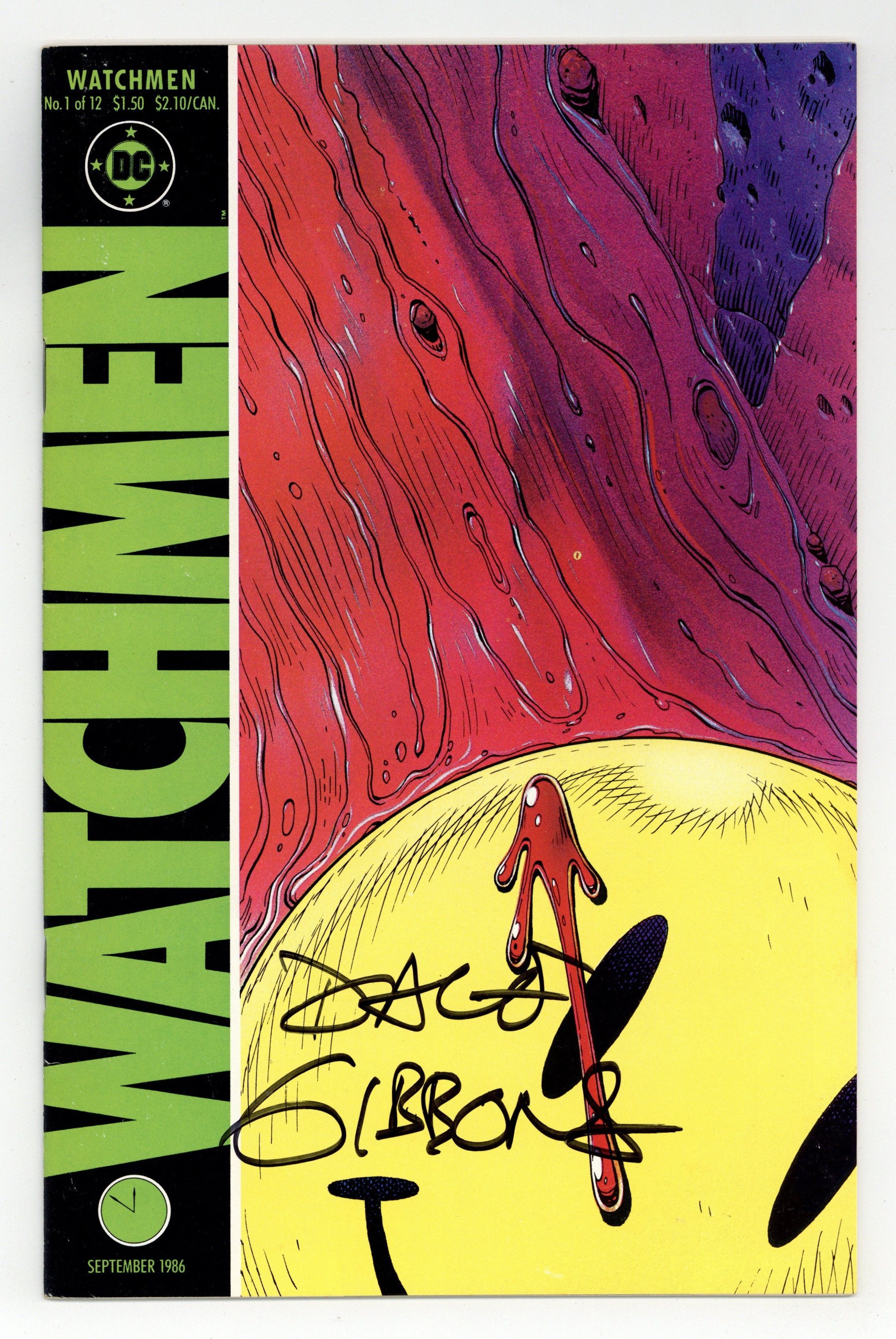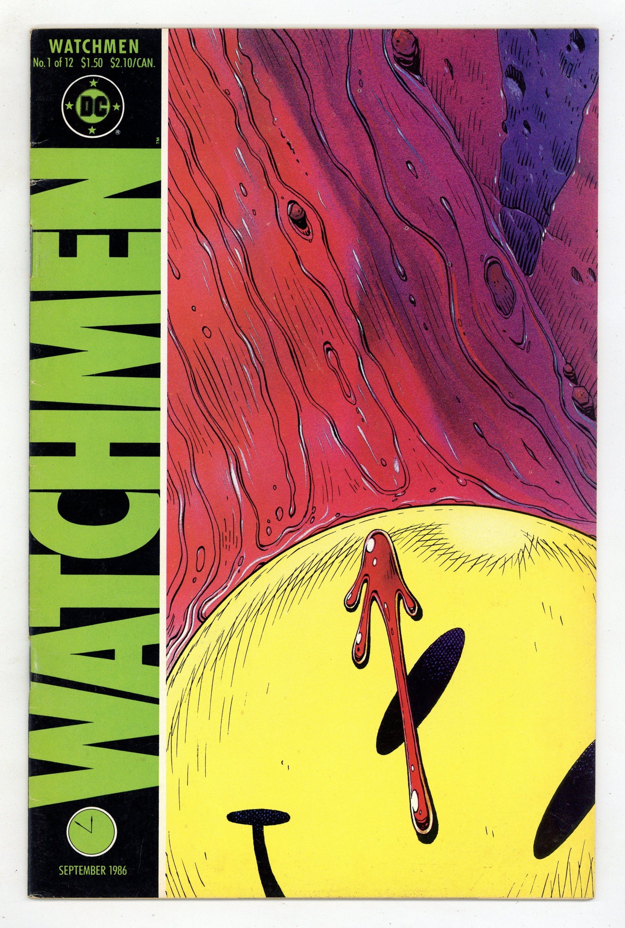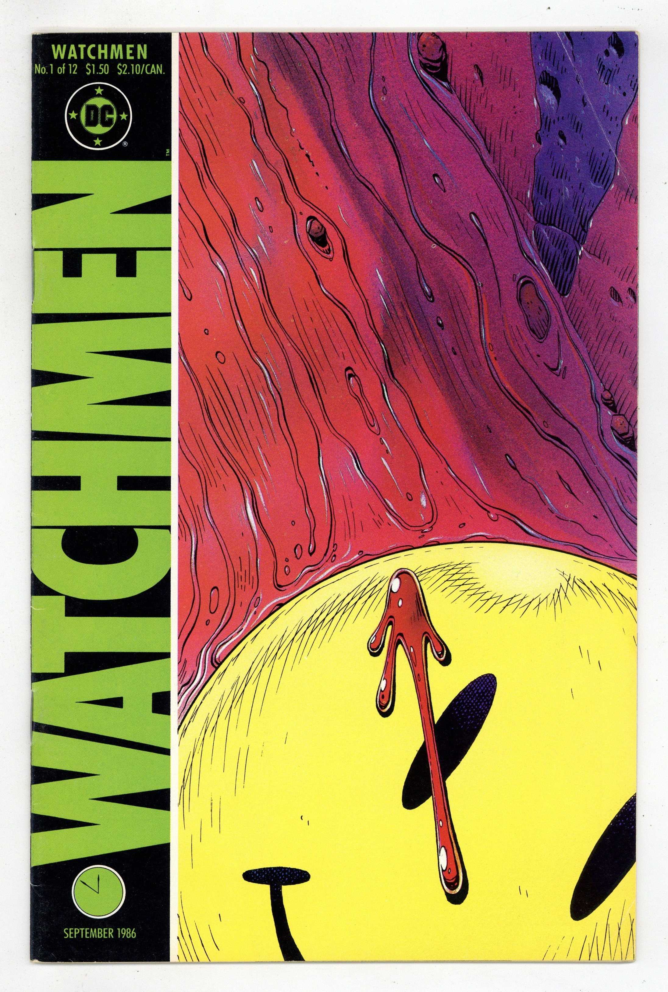 Alan Moore's classic take on the superhero genre. Widely considered to be one of the greatest stories in modern comics history. Art by Dave Gibbons. 1st appearance Rorschach, Ozymandias, Dr. Manhattan, Silk Spectre & Nite Owl. Death of the Comedian. Cover price $1.50.