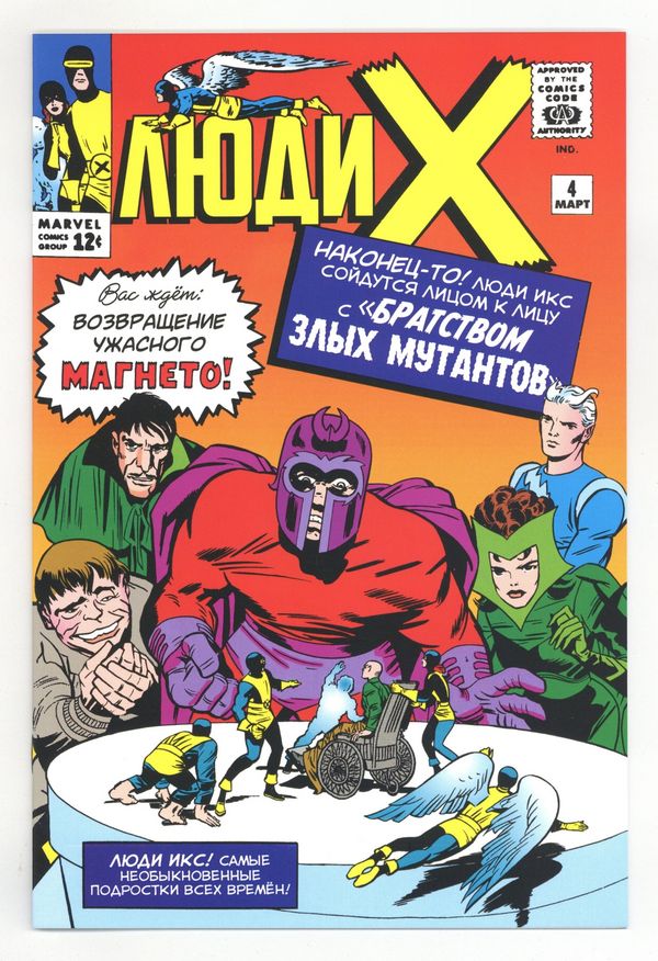 Published Oct 2020 by Comme il Faut Ltd..$85.00Russian Reprint Edition. Reprints Uncanny X-men (1963 1st Series) #4. Story by Stan Lee. Art and Cover by Jack Kirby and Paul Reinman. 6 1/2" x 9 1/2". Russian Language.