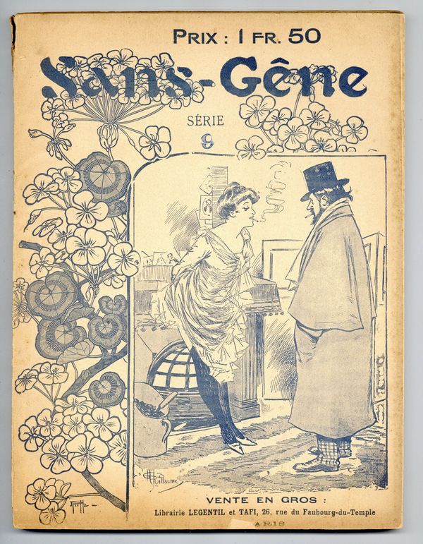 The term "sans-gêne" is an appellation used in France to denote unabashed behavior and a disregard for societal constraints. Sans-Gêne in this context is a charming, humorous, and risqué French magazine, published and edited by Samuel-Sigismond Schwarz, that lives up to the name. Features biting wit and humor with numerous mildly bawdy illustrations and cartoons by some of the top French illustrators of the time. This album collects issues 81 - 90, dated Sept. 13 through Nov. 15, 1902. 8.5" x 11", 160 pages, B&W. NOTE: All text in French.