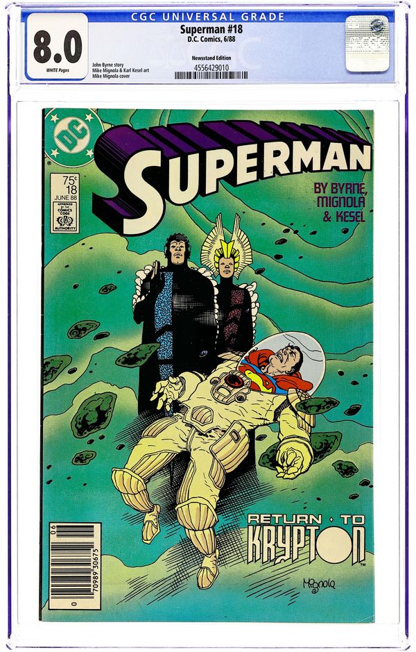 Newsstand Edition. "Return to Krypton!" Guest-starring Hawkman and Hawkwoman. Story by John Byrne. Art by Mike Mignola and Karl Kesel. Cover by Mike Mignola. Story continued from Action Comics #600. In order to save his life, Superman must return to the one place he never thought he'd see - the planet Krypton. Here the Man of Steel will embark on a much needed sojourn. Once done, the Last Son of Krypton will have a better understanding of who he is, where he comes from, and his place in the universe. Cover price $0.75.