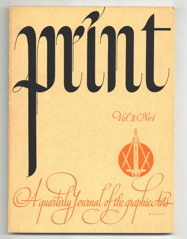 Published Jun 1941 by William Edwin Rudge.$23.00Print a Quarterly Journal of the Graphic Arts (later titled Print and published bi-monthly) is a war time softcover book published by William Edwin Rudge. The purpose of Print is to observe contemporary methods of printing and illustrating and to point out improved methods and styles as compared to the past. Contributors for this issue include Thoreau MacDonald, Hellmut Lehmann-Haupt, Fritz Eichenberg, Oscar Ogg, George Salter, Edwin A.R. Rumball-Petre, Elenor Feisenberger, and more. 43 pages, black and white illustrations and photos in the interior, 7-in x 9.75-in.