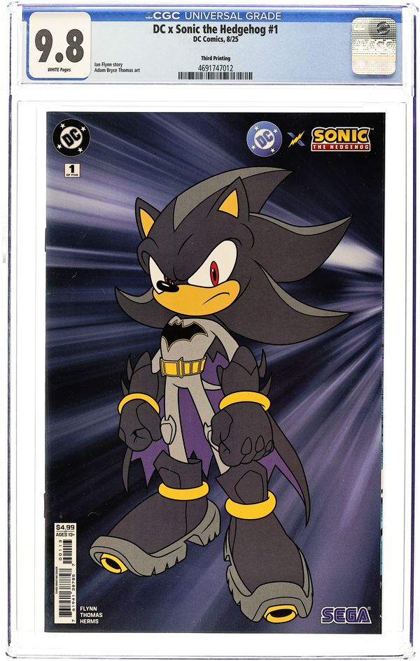 3rd Printing. Written by Ian Flynn. Art by Adam Bryce Thomas. GOTTA. GO. FLASH-FAST. It's a crossover event unlike any other! The monstrous Darkseid crosses dimensions to invade the world of Sonic the Hedgehog, seeking the ultimate power. Sonic and his friends have faced everything from mad scientists to ancient spirits, but the forces of Apokolips may be too much for them. Thankfully, the full heroic might of the Justice League arrives to back them up! Don't miss part one of this unique crossover event! 32 pages, full color. Rated T+ Cover price $4.99.