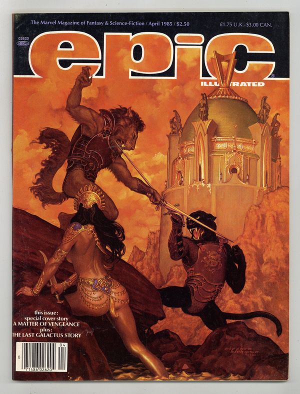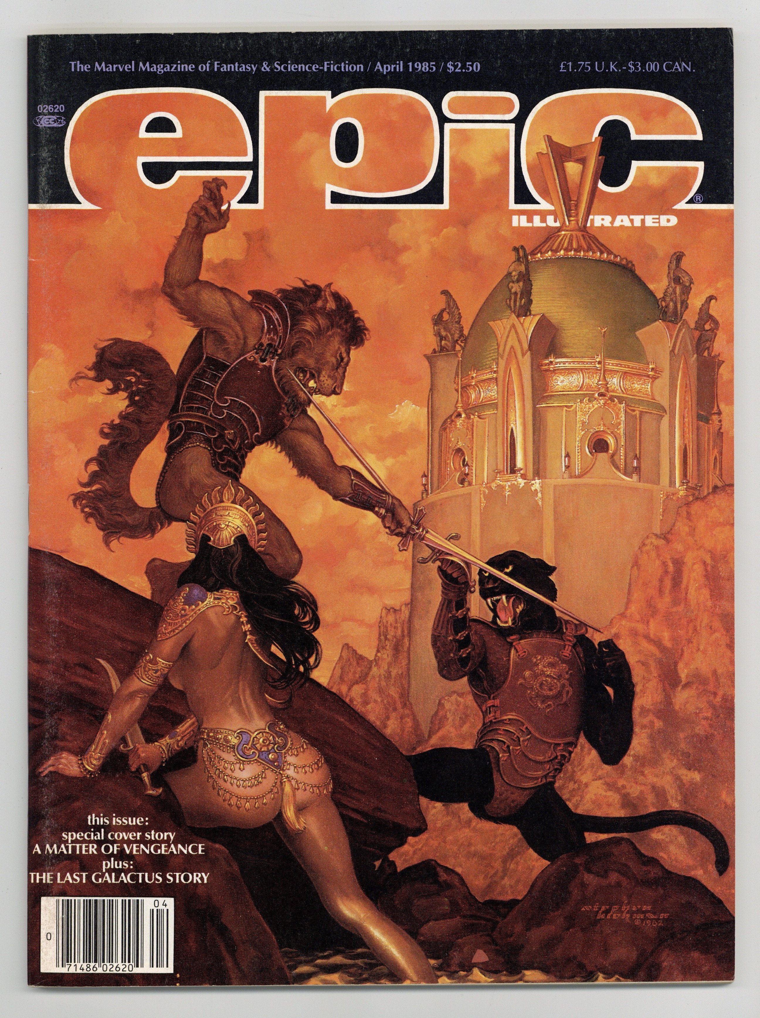 Cover art by Stephen Hickman. Night Run, script and art by Kent Williams. The Rhyming Robot (Chapter Four)--The Last Galactus Story, script and pencils by John Byrne, inks by Terry Austin. The Art of Jose Segrelles. Rider, script by Archie Goodwin, art by Jonn Zack. Frank Kelly Freas' A Separate Star article by Jo Duffy. Knock Knock, script and art by Phil Hale. In Search of Ancient Myths starring Dr. Watchstop, script and art by Ken Macklin. Mediaview article by Dennis O'Neil. Ghosts in the Machine, script and art by Rick Veitch. The Apes of a Cold God, script and art by Zoran Vanjaka. Cobalt- 60 story, script by Larry Todd, art by Mark Bode. A Matter of Vengeance, script by Archie Goodwin, art by Rich Buckler. Little Otis's 5 Cent Ride, script and art by John Lakey and Laura Lakey. 100 pgs. April, 1985. $2.50. Cover price $2.50.