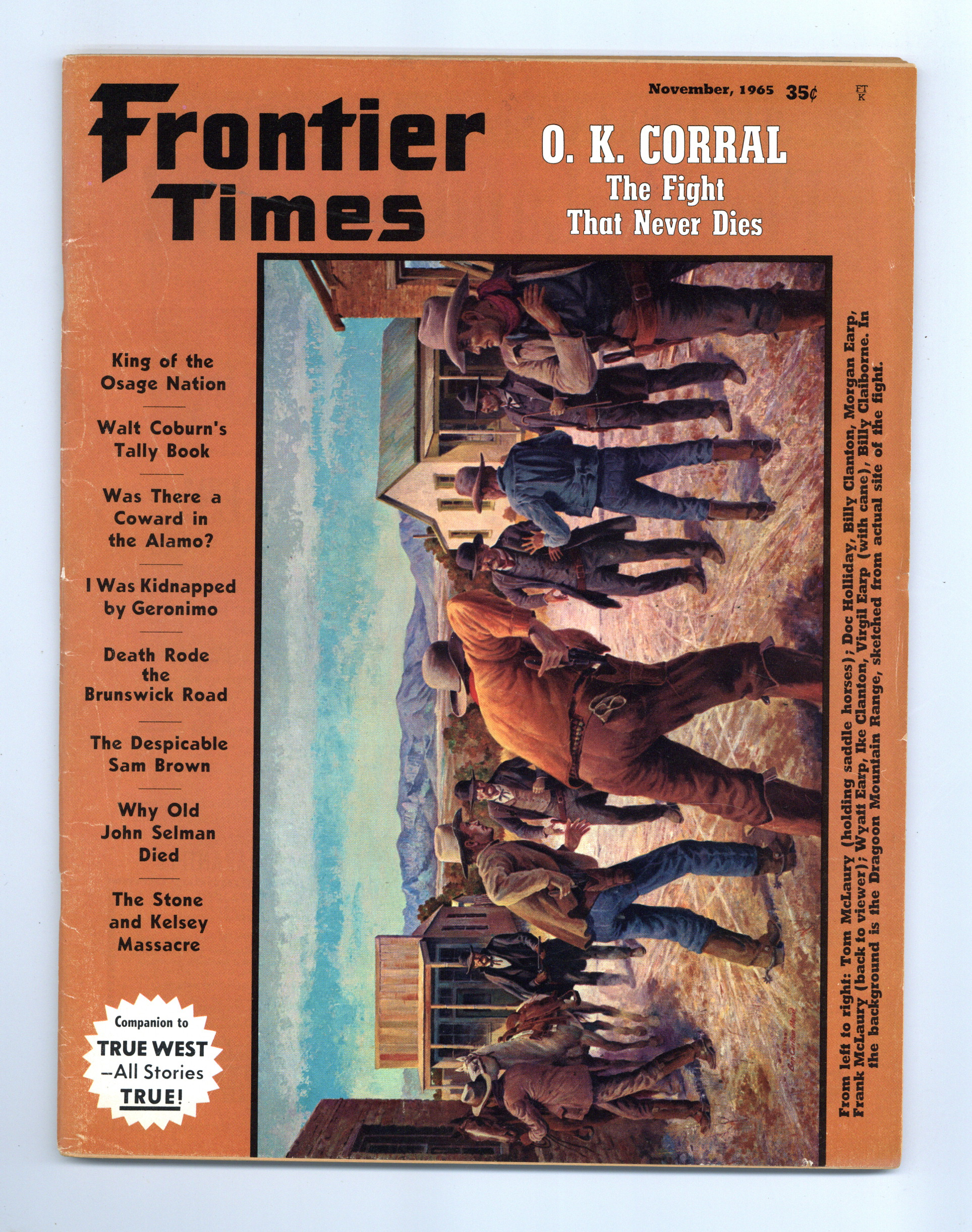 Magazine of true stories of the American Frontier. Features illustrations and photos of the old west. B&W text. Color cover. 8 1/2-in. x 11-in. 72 pages. Cover price $0.35.